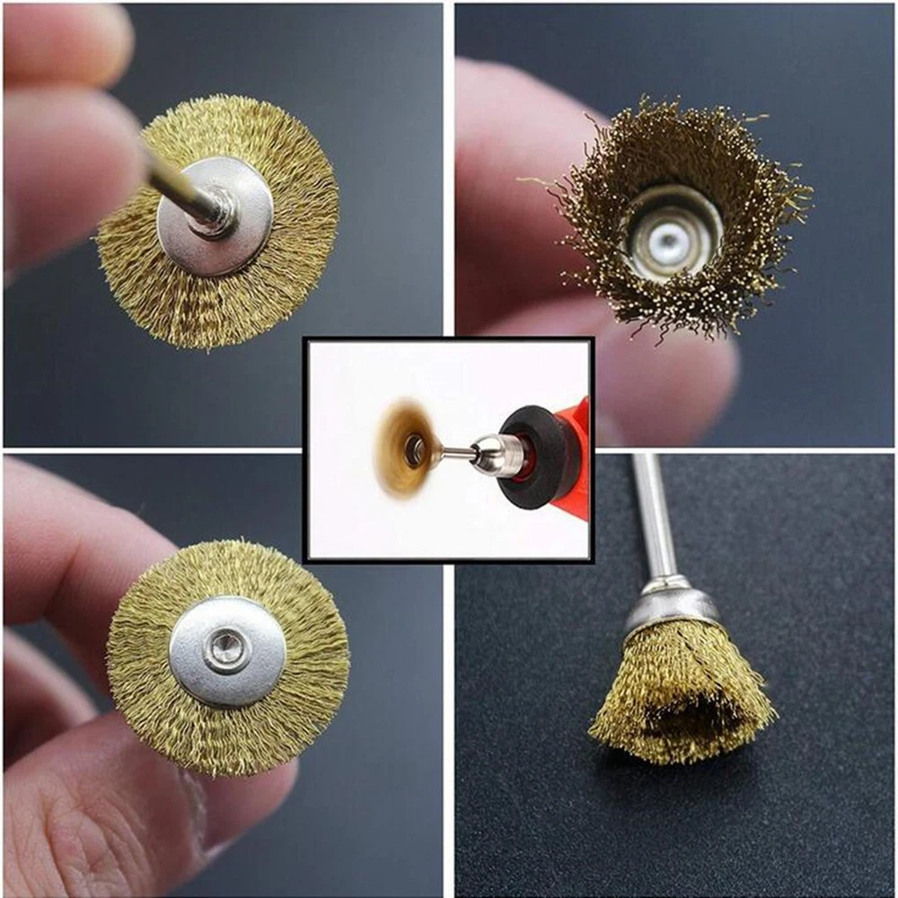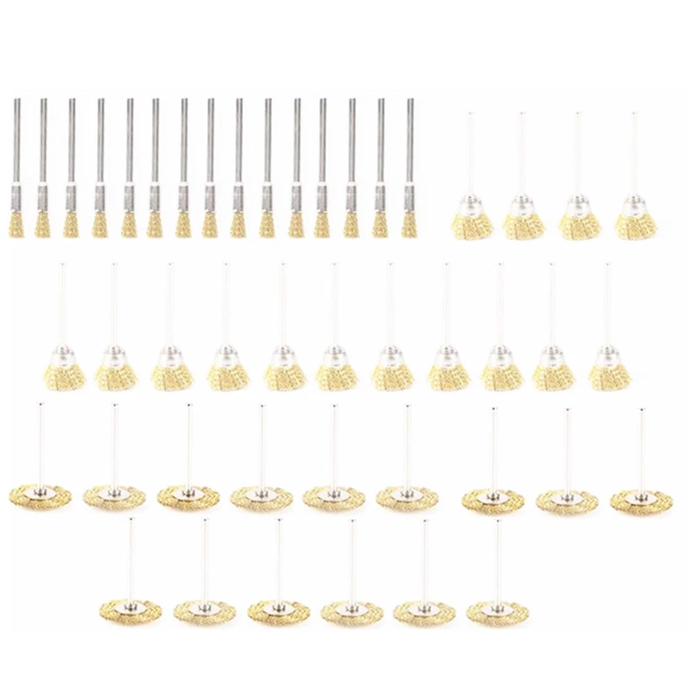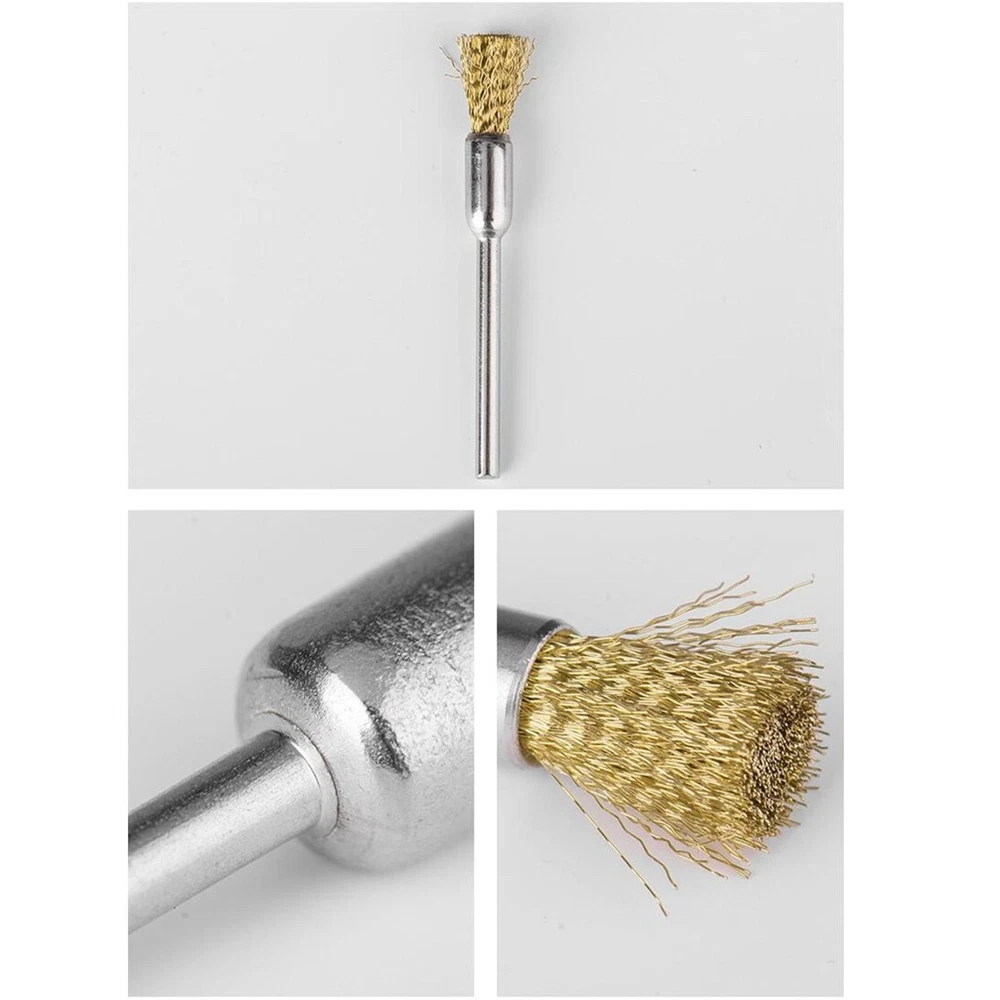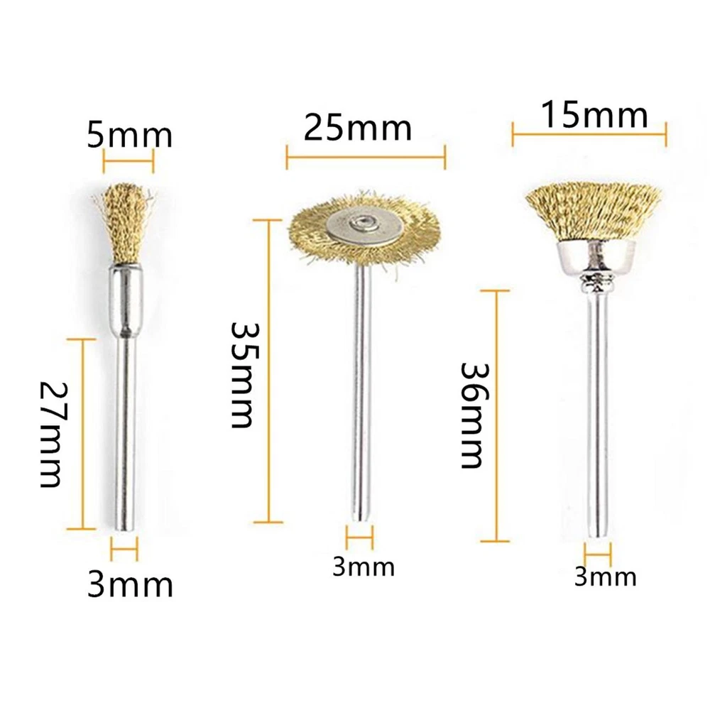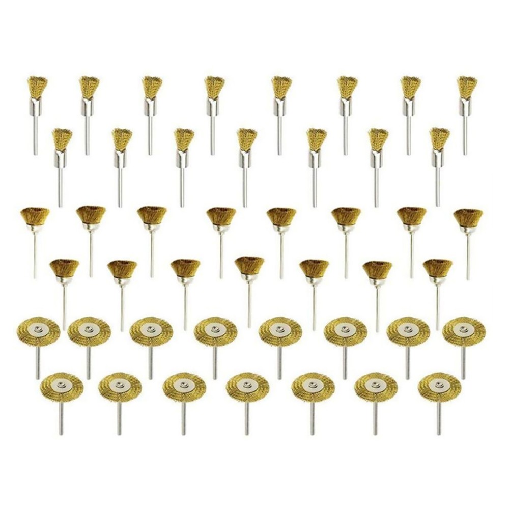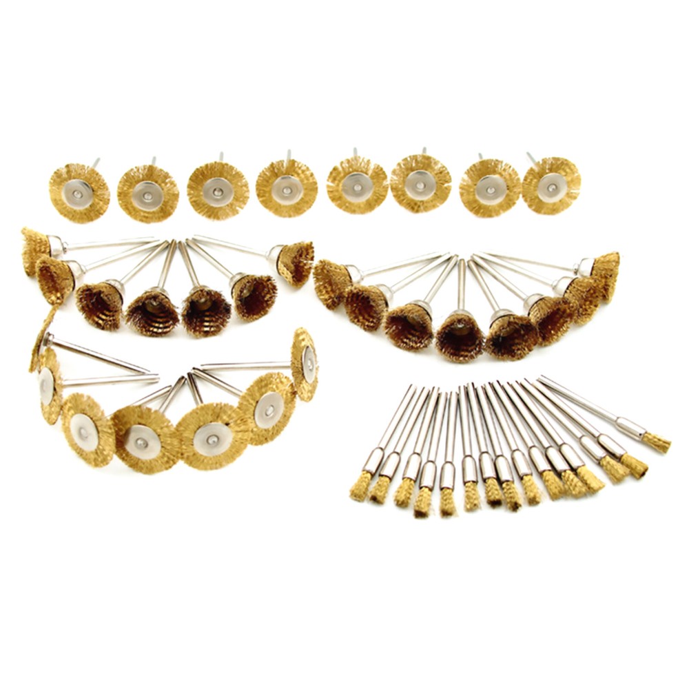NEW-00023 45Pcs Brass Wire Wheel Polishing Mix Brush Set for Dremel Rotary Tool Shank PRODUCT DESCRIPTION Features: 100% brand new with great quality. Good use for metal and non-metallic surface cleaning, rust removal, sanding, dusting, deburring, polishing, etc. Perfect accessories for power tools like angle grinder, drill press, and so on. For removing burrs, rust, dust and the oxide layer. Ensures the high quality of metal and stone, very effective. For processing various shapes of wood, metal, etc., polishing or sanding in almost any surface. Specialty equipment and other power tools. Specifications: Handle material: Stainless Steel Brush material: Brass Color: as picture shown Shape: T type/Bowl type/Pin type Brush diameter: Approx. 25mm/15mm/5mm Shank Diameter: Approx. 3mm Brush thickness: 0.13mm Package includes: 15 x T-shaped wire brush 15 x Bowl type wire brush 15 x Pin type brush Shipping Contact Us Our products have been sent to the US warehouse. All items will be shipped via WINIT CORPORATION. In 2-5 working days, you will receive your items. Thank you and have a nice day. If you have any question about us or items, please contact us, we will reply it as soon as possible. Shipping Our products have been sent to the US warehouse. All items will be shipped via WINIT CORPORATION. In 2-5 working days, you will receive your items. Thank you and have a nice day. Contact Us If you have any question about us or items, please contact us, we will reply it as soon as possible. PaymentShippingReturn policyAbout usContact us Copyright © - Tongtool All rights reserved | Design:Tongtool