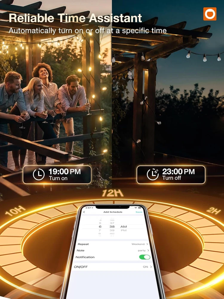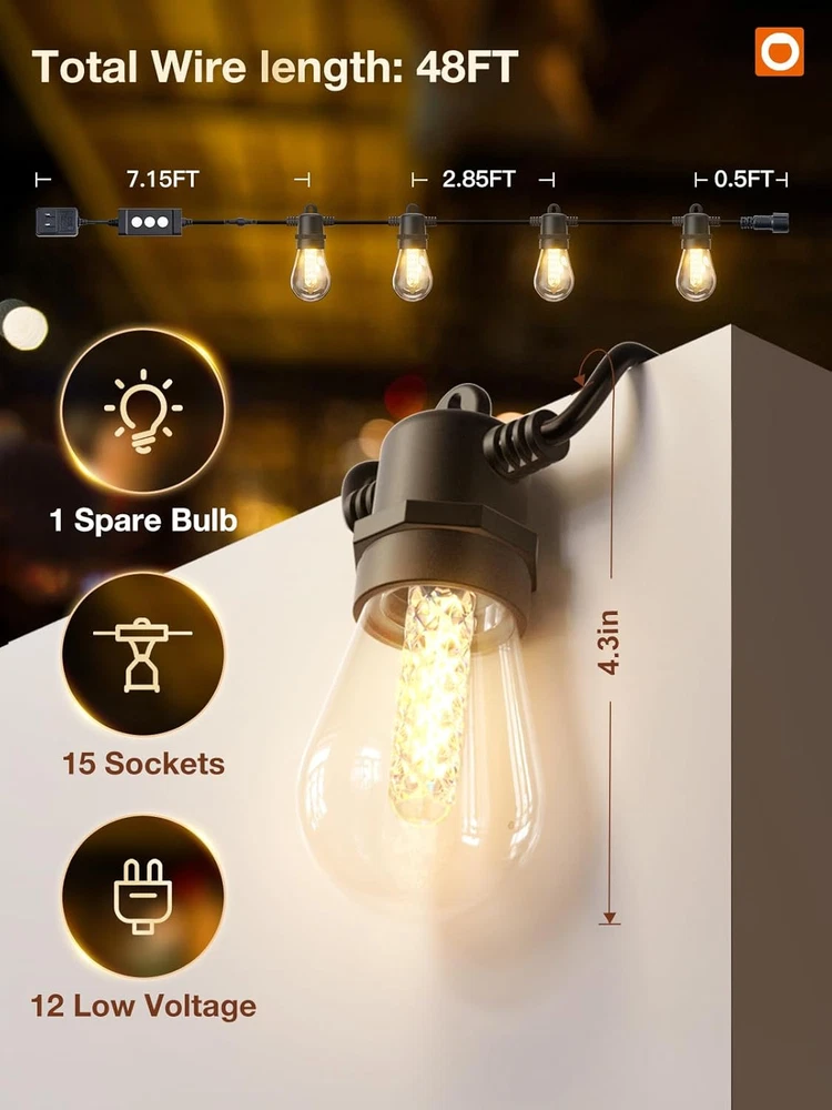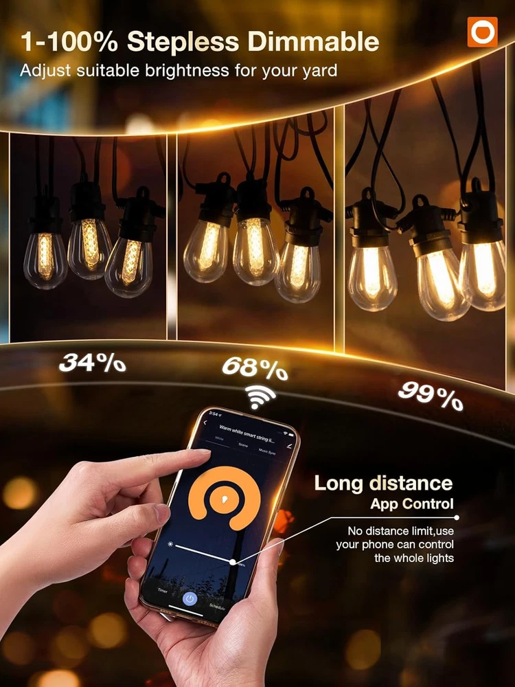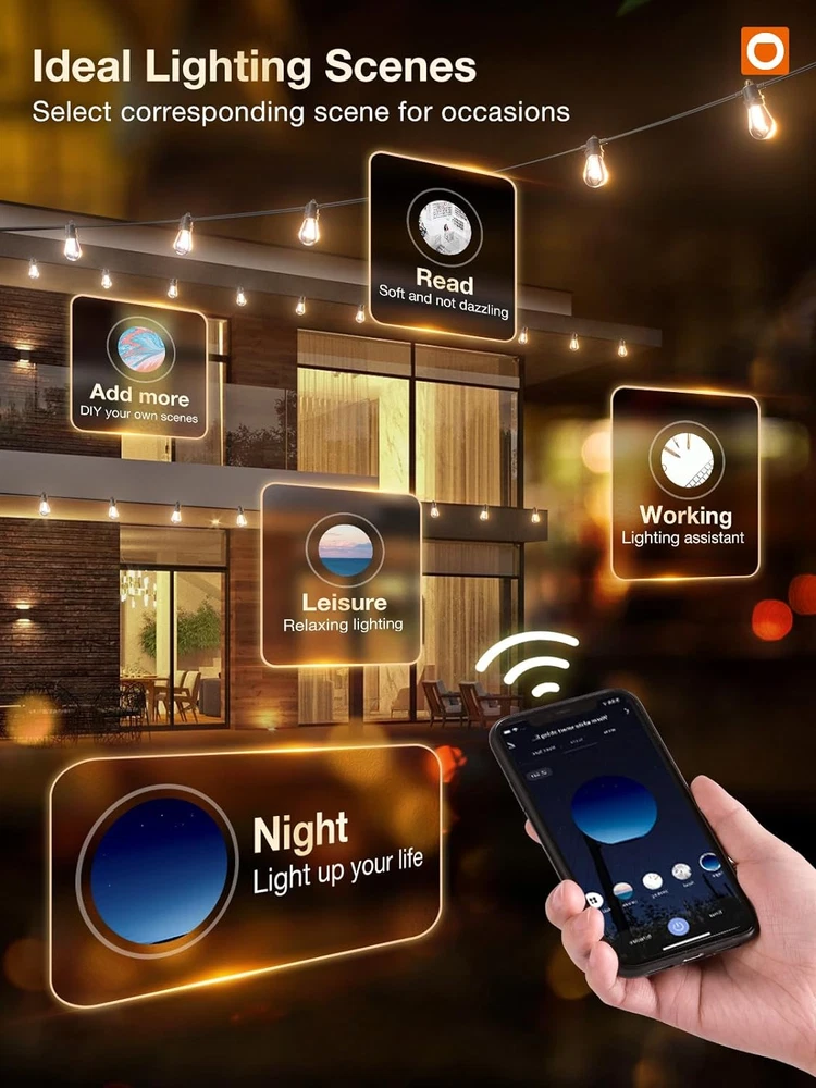 Store New Arrivals Add to Favorite View Feedback Contact 48FT Smart Outdoor String Lights with Remote, Dimmable Patio Lights with 15 LED Edison Waterproof Bulbs, String Lights for outside Works with APP, Music Sync Outdoor Lights for Gazebo Backyard Description Item model number USS14(T13)-48FT15LEDP1+1-WR-XTW20C Light Source Type LED Style Traditional Number of Items 1 Power Source Corded Electric Number of Light Sources 15 Control Method App, Voice Theme Music Style Number USS14(T13)-48FT15LEDP1+1-WR-XTW20C Controller Type alexa,app control,remote control Connectivity Protocol Wi-Fi Wireless Communication Technology Wi-Fi Occasion Type Christmas Seasons winter Additional Features Dimmable Package Dimensions 8.46 x 8.27 x 5.71 inches; 2.8 Pounds Indoor/Outdoor Usage Outdoor Material Type Plastic Light Color Warm White Water Resistance Level Waterproof Connectivity Technology Wi-Fi Occasion Christmas Special Feature Dimmable Bulb Base E26 Bulb Shape Size G40 Color Black Indoor Outdoor Usage Outdoor Voltage 1.2E+2 Volts Included Components Remote control Style Name Traditional Size 48FT Remote & Voice & APP Control: addlon smart LED outdoor string lights offer three control methods. Remote can adjust brightness, set timers, and apply various lighting effects directly. Can get the voice commands to control the string lights. You can use the Joinin Home App without any distance limitations. (Only supports 2.4GHz Wifi network) Dimmer and Timer: Don't need to purchase dimmer and timer, just use smart string lights. The patio lights is dimmable, ranging from 1% to 100% as desired. The timer function allows you to set specific timers and date(from Monday to Sunday) to automatically turn on or off outdoor string lights. Enjoy the beautiful illumination whenever you want! Music Sync Lighting Effects: Outdoor Lights with remote dance to the music, blinking and shining to create a lively and dynamic atmosphere for parties or festivals like Christmas. 4 different lighting effects can emit a soft, tranquil glow to create a perfectly cozy ambiance, and can also display flashing lights. Waterproof & Shatterproof: Our outdoor patio lights waterproof can withstand rain, sun, wind ,snow and extreme temperatures. Made of hard anti-drop plastic, the shatterproof bulbs protect our outdoor lights from breaking. These premium LED string lights for outside is great decorations for bistro, patios, backyards, decks and more. 3-year Product Support: We proudly stand behind all of our products 100% and offer 3-year quality support. If you encounter any issue with this hanging string lights, don't hesitate to reach out to our customer support. (Our string lights is connectable,,but only allows to connect with one 48ft) Product Description If you have any problem, please contact with us. We can reply within 24 hours. You can not connect with the lights. Please contact with us and we will help you steps by steps. 1 IP65 Waterproof 2 Shatterproof ABOUT US We offer the best prices around on high quality products. Our E-store includes media such as books, movies, music and games while offering electronics, toys, sporting apparel, clothing, tools, general home, garden items and more. SHIPPING We are always working hard to ensure your package arrives as soon as possible. Please understand that some factors like weather, high postal traffic, and the performance of shipping companies are outside of our control. We offer free shipping to the lower 48 states and ship within 2 business days of payment, usually sooner. We do not accept P.O. Boxes. Please provide a physical address. For shipping outside of the continental USA, we only use eBay's Global Shipping Program.The item is shipped to KY and then sent to the rest of the world. International customers are responsible for all duties and taxes. Continue to check out in order to calculate costs for shipping the item to your country. Messages regarding eBay's Global Shipping Program MUST be directed at eBay EXCLUSIVELY. RETURNS We offer a 30-Day Return Policy on items which you are not completely satisfied with. You have the option for a full-refund or an exchange of the item. No returns are available on items shipped outside of the USA. PAYMENT We accept PayPal. CONTACT US This page content is yet to come Please ad us to your favorite seller and visit again later Thank You CUSTOMER SATISFACTION We try our very best to make sure every customer is completely satisfied. If there's a problem, message us! We're happy to help. WE ACCEPT Copyright © 2021 AutoDS. | All Rights Reserved