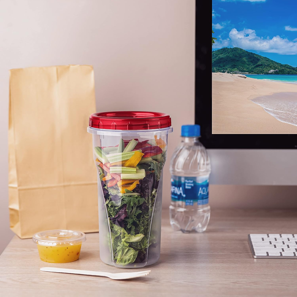 These deli containers are a game-changer for food storage! The 48-ounce size is perfect for meal prep, leftovers, or freezing soups. The clear bottom makes it easy to see contents, while the red twist-lock lids seal tightly—no leaks! They’re stackable, microwave-safe, and super durable. Love that they’re reusable and come in a pack of 4. Great value for the quality!