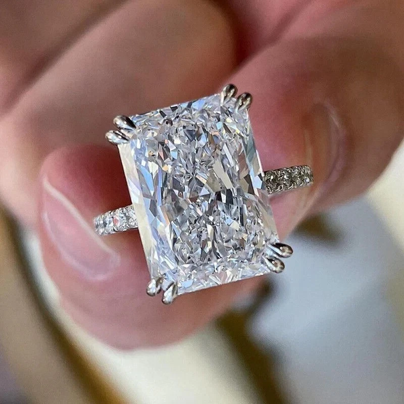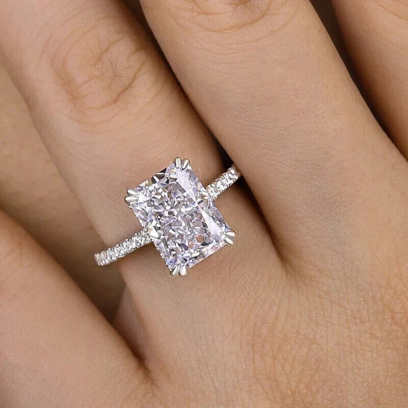 4Ct Radiant Cut Simulated Diamond Solitaire Wedding Ring 14K White Gold Plated