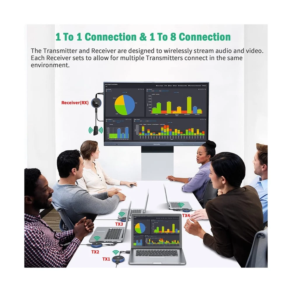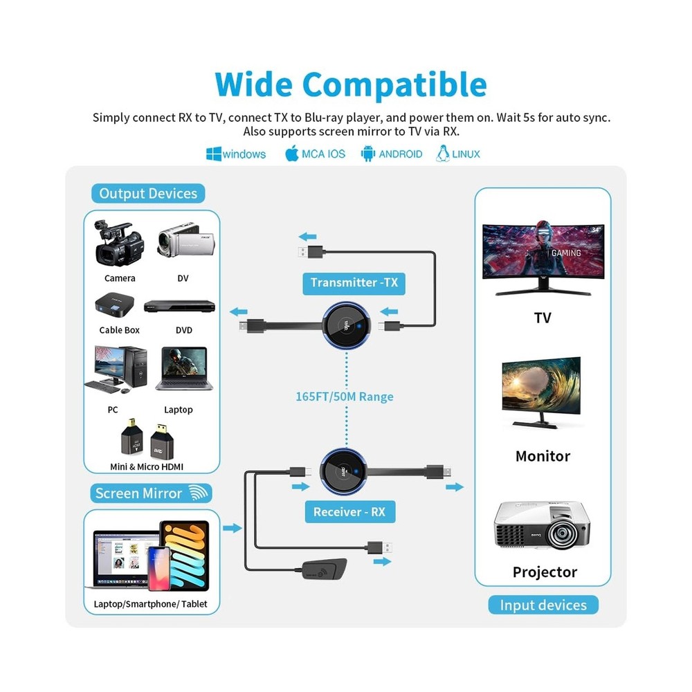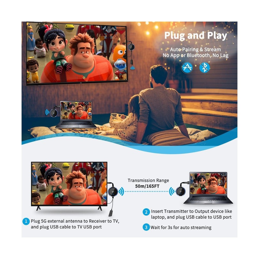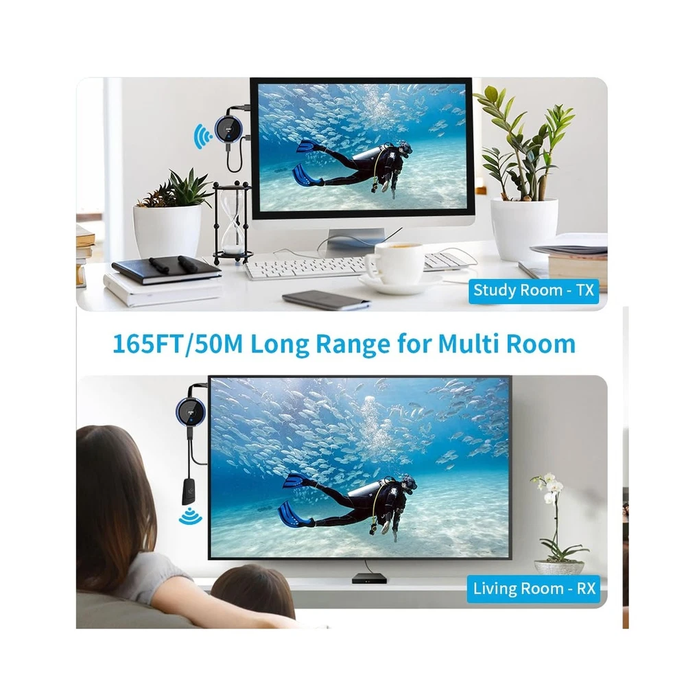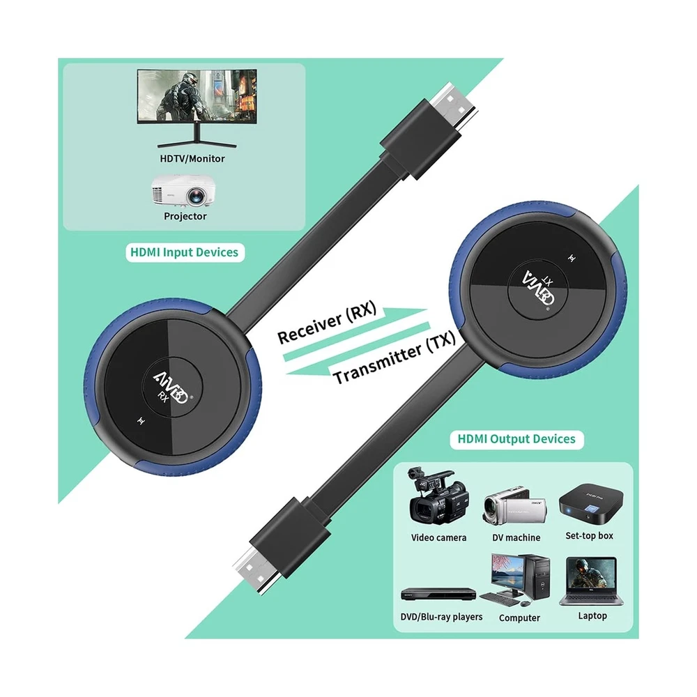 Brand New Wireless HDMI Transmitter and Receiver Kit 4K, AIMIBO Casting 2.4/5GHz Stable Video/Audio to Monitor, Projector, HDTV, Wireless HDMI Extender 165FT/50M Long Range for Laptop, PC, Camera, Blu-ray, PS5 Manufacturer model: Q3B Make Life Easier- AIMIBO Wireless HDMI Transmitter and Receiver can wirelessly stream audio & 4K video from laptop, TV box, camera to HDTV, projector, monitor up to 165FT/50M transmission range. No more messy HDMI cables all over the house or meeting room. Best for Home Theater, Business Presentations, Conference Rooms, Education, Sports Viewing, Music Concerts, Travel Movies, etc. Plug & Play, Instant Streaming- Our Wireless HDMI Extender comes pre-paired from the factory, making it truly plug-and-play with no need for Bluetooth, WiFi, or apps. Simply connect the receiver to your display/TV/projector, connect the transmitter to your Blu-ray player, and power them on. In just 5 seconds, the screen will sync. Note: The 5G external antenna is for the receiver and is powered by a USB cable. Amazing 4K Movie Experience- Build your own home theater with this 4K@30Hz ultra HD wireless HDMI kits. Enjoy seamless HD series, movies, and live sports with your friends or family members from any video app, with support for encryption screen protection apps. 1080P is factory-set, to switch to 3840X2160P, please adjust it on the 192.168.203.1 page. 5.8Ghz Stable Cast, 0.1S Latency- AIMIBO Wireless HDMI Video Transmitter Receiver built-in 2.4 /5.8Ghz dual band high speed antenna, transmitting range up to 165FT /50 meters under a barrier-free environment without interference. Only 0.1s low latency. [Note] Work through walls or floors will be shortened to 32FT/10 meters. If you experience delays in crowded WiFi areas, change the wireless channel on the setting page for a smoother viewing experience. Wide Compatibility- These Wireless HDMI Kits are lightweight and easy to carry them with you at any time. Compatible with most HDMI-equipped devices, like laptop, PC, PS3, PS4, HDTV, Blu-ray Player, Projector, 4K TVs, DVD, DVR, Blu-ray players, Set-top boxes, Cable/Satellite boxes, etc. Explore More Hidden Features - Our wireless HDMI kits can connect 8 transmitters to 1 Receiver in the same time, switching by clicking the function button. It's very convenient to share contents in big conference room. Also, a single receiver can stream videos from phone, tablet, laptop to TV by their screen mirror function. Compatible with Android, iOS, and window devices. Multiple Sets at the Same Place without Interference5 Languages Optional Extra Mini & Micro HDMI Adapter & One Year WarrantyComing with 2 extra HDMI adapters, they can easily converts mini/micro HDMI port on your laptop, camcorder, camera, or even some tablet to TV, monitor, or projector. Every AIMIBO Brand product enjoy One-Year manufacturer replacement warranty and free lifetime technical support. Description Shipping and Handling Please allow 5-7 business days for the package to arrive, regardless of buyer location within the US. We will provide an online tracking number to you once the item has been shipped. It may take a few business days for our automated system to process the tracking number onto eBay. However, this will not affect the shipping times. Return Policy All our products are brand new and sealed. All items qualify for returns within 30 days of receipt. Feedback We take our reputation seriously. If you have any questions or concerns, please contact us and we will respond back to your message within 24 hours.