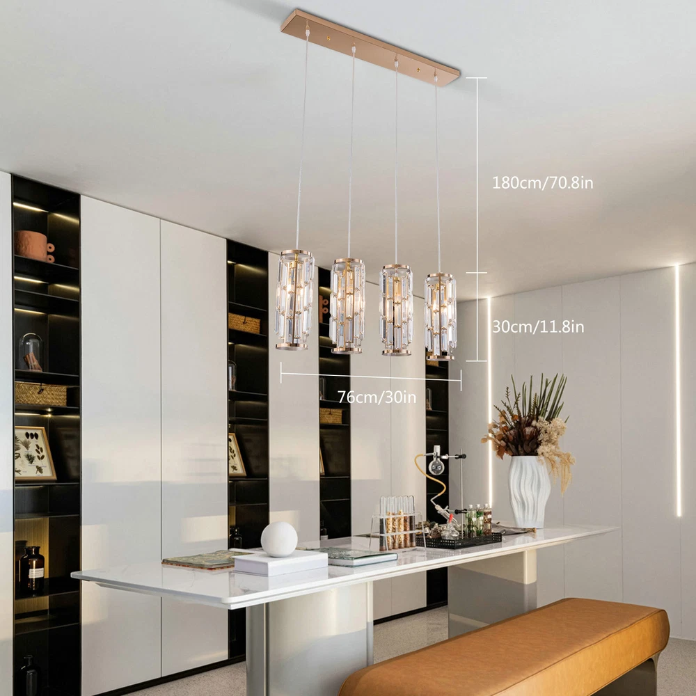 4-Light Luxury K9 Crystal Chandelier Lighting Ceiling Light Pendant Lamp Fixture About this item: Modern Crystal Pendant Lighting: High-quality K9 crystals trimmed a beautiful lampshade, and matches with nickel finished metal canopy and frame; A modern and gorgeous fixture diffuses stunning lighting wherever it mounts. Perfectly Fit: The crystal lampshade refracted when light passed through the prism crystal-formed lampshade and create a fantastic lighting effect, match with the adjustable cord, so you can customize the pendant lighting’s height to fit any ceiling height. Length of each suspension wire: 70.8" the farmhouse pendant light fixture can be adjusted from 70.8"to 5.9" easily. Application: This contemporary crystal pendant lighting is also a decorative choice for various spaces, suitable for both home and commercial place, such as kitchen island, living room, bedroom, dining room, foyer, meeting room, etc. 4xE26 Bulbs It works well with any E26 bulb base, Maximum power: 40W (each bulb,Bulbs NOT Included), LED or CFL or incandescentEdison bulbs, (Bulbs NOT Includedeach bulb is recommended). It’s dimmable when using with a dimmable bulb and compatible dimmer switch. Easy Installation: The crystal strings require some to to hang to the metal frame to formed a gorgeous crystal lampshade, but it’s easy and definitely worth every effort when it’s done, and the package includes detailed instruction and all necessary hardwired accessories. Specifications: Material:Metal and Crystal Color:Clear Input:AC 110 -120V Tips: -Please make sure the light is securely supported and is disconnected from power when installing. -Installing the light bulbs before hanging the makes the installation easier. [Easy to install] Open the package and check the appearance of the chandelier. Follow the instructions to group the lights together and test their effects before installing them on the ceiling. In the process of assembling the lamp, please pay attention to check the position of each wire interface and tighten the fixing screws Payment Delivery details Terms of sales About us Contact us Payment We accept ebay payment 。 Fees such as import duties, taxes are not included in the item price or shipping costs. These charges are the buyer's responsibility. Delivery details Shipping: 2-9 working days to: USA Terms of sales We maintain high standards of excellence and strive for hundred percent customer satisfaction. Feedback is very important to us. We hope that you contact us immediately before you give neutral or negative feedback, so that we can address your concerns. It is impossible to address issues if we do not know about them! About us Your satis faction is our ultimate goal. We work hard to earn your trust and future business. Our certified technicians have tested each item before shipping. The unit comes with 1 year limited warranty on all manufacturing defects. a) If you receive a defective item, you may return it or ask for a discount. Please contact us within 14 days after you receive the package. b) What you returned must be intact and in its original packaging as re? u. Customer is responsible for shipping costs of the returned item. c) We will cover the cost of shipping back t with the shipping rate indicated in the registration page. We will send you a new unit or refund the full payment you paid. Thank you. Contact us Business Hour Business Hour: Monday To Friday: 8:30 AM to 5:00 PM (Beijing China time) Due to time zones, our reply to your questions may not be immediately. But within above working time, we will reply your email within 24 hours. If it's non-workdays, please kindly be patient and wait till Monday. Please contact us with ebay message. Please feel free to contact us if you have any questions. Monday To Friday: 8:30 AM to 5:00 PM (Beijing China time) Due to time zones, our reply to your questions may not be immediately. But within above working time, we will reply your email within 24 hours. If it's non-workdays, please kindly be patient and wait till Monday. Please contact us with ebay message. Please feel free to contact us if you have any questions. On Nov 11, 2024 at 22:03:05 PST, seller added the following information: