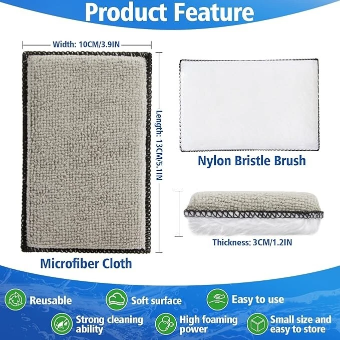 About this item Dual Side Different Material: Microfiber pad is made of different material on both sides, one side is microfiber terry cloth, the other side is nylon bristles, both are very soft material, won't cause scratches or damages to the surface of the object to be cleaned, can be used for car detail cleaning, leather seats, wiping the body glass and upholstery. Gentle scrubbing to protect your car, can also be used for home cleaning, leather sofa, wooden cabinets, all need this sponge Multifunctionality: Nylon bristle brush side: for gentle brushing, suitable for cleaning dust, dirt and grime, especially for items with non-abrasive surfaces. One side of microfiber towel cloth: for wiping and absorbing moisture, suitable for cleaning surfaces, wiping glass, tiles, furniture and kitchen utensils, etc. It can absorb moisture and clean surfaces quickly. This double-sided sponge combines water-absorbing wiping and gentle brushing, making it suitable for different cleaning tasks REUSABLE: Each pack has 4 interior detailing sponges of 4 x 5 inches with 1.2 inches thickness, using a combination of different materials to give this double sided sponge a longer lifespan for longer lasting cleaning needs. Not only can this sponge be reused multiple times, but just one sponge has the function of absorbent wiping and gentle brushing, which can replace single-function cleaning tools, improve cleaning efficiency, save cost and storage space For Family: Interior detailing sponge is a practical gift for your family and friends to better clean and protect their cars and furniture, detail cleaning without harming the surface of the object without leaving scratches, can provide them with convenience in their daily life and convey your concern and blessing for their quality of life NOTE: If you have any dissatisfaction with this product, just contact us, we will try our best to solve your problem ABOUT US We offer the best prices around on high quality products. Our E-store includes media such as books, movies, music and games while offering electronics, toys, sporting apparel, clothing, tools, general home, garden items and more. SHIPPING We are always working hard to ensure your package arrives as soon as possible. Please understand that some factors like weather, high postal traffic, and the performance of shipping companies are outside of our control. We offer free shipping to the all states and ship within 2 business days of payment, usually sooner. We do not accept P.O. Boxes. Please provide a physical address. RETURNS We offer a 30-Day Return Policy on items which you are not completely satisfied with. You have the option for a full-refund or an exchange of the item. CUSTOMER SATISFACTION We try our very best to make sure every customer is completely satisfied. If there's a problem, message us! We're happy to help.