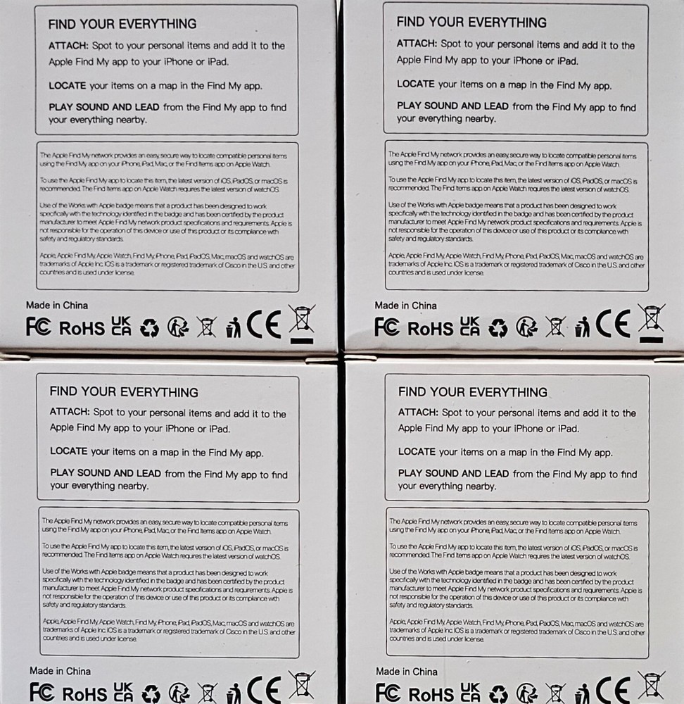 MODIFIED TO BE SILENT! This offer is for 4 air tags similar in size and shape to apple airtag and use same software How an MFi-Certified AirTag Works: An MFi-certified AirTag is essentially an AirTag-compatible device made by third-party manufacturers, certified under Apple’s MFi (Made for iPhone/iPad/iPod) program. The MFi certification ensures that these devices meet Apple’s strict standards for quality, compatibility, and safety. MFi-certified AirTag-compatible trackers offer similar functionality to Apple's AirTag, but are built by other companies. Here’s how they work: Bluetooth & Find My Network : MFi-certified AirTag alternatives also use Bluetooth technology to communicate with Apple’s Find My network . Like Apple’s AirTag, they leverage nearby Apple devices to anonymously update their location. Find My App Integration : These devices are designed to work seamlessly with Apple’s Find My app , so you can track them just like AirTags. When you attach one to an item and mark it as lost, the same Find My network helps locate it. No Ultra-Wideband (UWB) : Most MFi-certified AirTag-compatible devices don’t include UWB technology for Precision Finding, as the U1 chip is an Apple-exclusive feature. Therefore, while they still provide reliable tracking, they may not offer the highly accurate direction and distance guidance that Apple’s own AirTags offer on UWB-supported iPhones. Design & Features : MFi-certified trackers can vary in design and features. Some may include additional features such as louder speakers, longer battery life, or different form factors compared to Apple’s AirTag, while maintaining compatibility with the Find My ecosystem. Privacy and Security : Like Apple’s AirTags, MFi-certified devices are built with privacy in mind. They follow the same encrypted and anonymous location-sharing rules through the Find My network, ensuring user privacy is protected. iPhone Compatibility for AirTag and MFi-Certified AirTags: Both Apple’s AirTag and MFi-certified AirTag-compatible trackers work with the following iPhone models: iPhone 6s and later : These devices can track both AirTags and MFi-certified trackers through Bluetooth and the Find My network . iPhone 11 and later : These models include UWB (Ultra-Wideband) technology, allowing them to use the Precision Finding feature for Apple’s AirTags. However, most MFi-certified trackers do not support this feature, as it requires Apple’s U1 chip. All devices must be running iOS 14.5 or later to support the use of AirTags and compatible MFi-certified trackers.