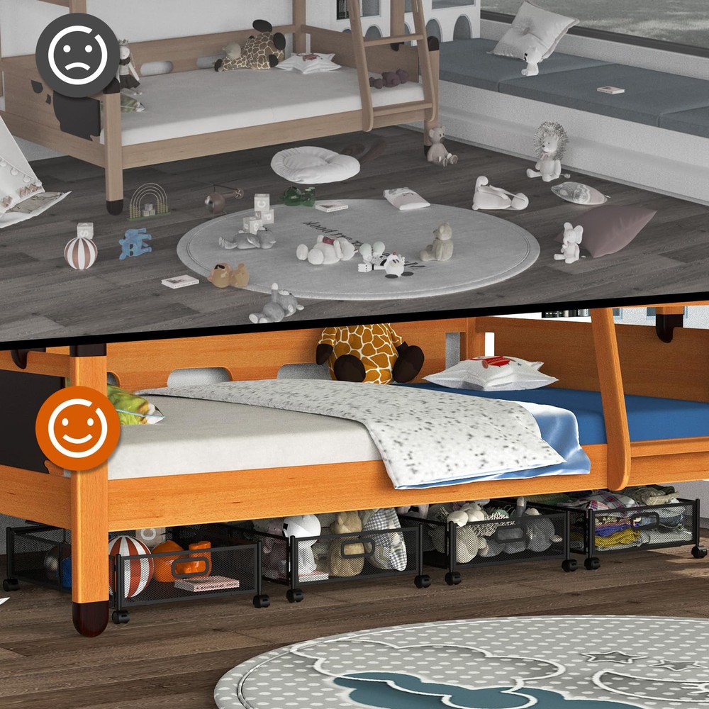 【High-quality Metal Containers】It has 4 Silent Plastic Wheels. The load-bearing capacity of this carbon steel cart is up to 22 pounds, way beyond the traditional plastics carts or non-woven materials carts 【Tool-free Assembly】The installation is so easy that you can install it in less than one minute. Just put the four wheels on the frame and then put the shelf onto it. 【Wide Application】It's great for seasonal under bed clothes and shoe storage, bedding storage and more. because of the rolling design, it can also be used as under bed drawers on wheels.It can to make your tiny space a new look! 【Foldable Design 】 Folded Size: 15.9×11.4×2.4 inches. Unfolded size 23.6×15.9×6.2 inches,No waste of space in use or placement. 【360 DEGREE ROTATING WHEELS】With 4×360-degree swivel wheels, this under-bed storage container moves around the home easily,2 of the wheels have a locking function, when you need it to stay still, you just press the locking mechanism .