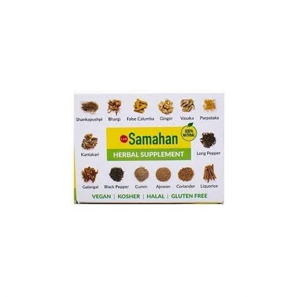 Link natural Samahan Ayurvedic Herbal Drink Ceylon Tea 4g Sachets 1 pack What is Samahan herbal tea? Samahan is a concentrated, water-soluble herbal powder. It’s a combination of 14 selected medical herbs. These are the herbs that are used for centuries in health care. It serves as a complete shield against seasonal diseases. Researches proved that Samahan herbal tea is an effective analgesic, expectorant, and anti-inflammatory agent. Thus, this Ayurvedic remedy accounts for immediate relief in cough and cold. When consumed daily, Samahan herbal tea acts as an immune booster. It prevents the onset of diseases. This preventive medicine also has curative effects on seasonal allergy. it in treating sneezing and running nose. It acts well in soothing itching throat and body aches. These are often the first sign of a cold or flu. 1.What is Samahan? Samahan is a 100% herbal preparation based on Ayurveda principles. It contains the extracts of 14 herbs mentioned in the sachet, only.The formula was developed by a panel of Ayurveda practitioners. The formula was developed after 5 years of Research and Development by a multi-disciplinary team of scientists, technologists and Ayurveda practitioners at Link Natural. 2.What's so special about Samahan? Samahan is the first Ayurvedi 100% herbal easy-to-use preparation in the market for colds and cold related symptoms and Flu. 3.When should Samahan be taken? Samahan can be taken at any time. It is most effective when taken at the first sign of cold or flu. 4.Can Samahan be taken while on other medication? Yes. Most ingredients in Samahan are commonly used in our day-to-day food.According to the panel of Ayurveda practitioners who developed the Samahan formula, it could be taken while on other medication. 5.If its an Ayurvedic formulation, how can it be instant and so effective? Ayurveda is a medical system that is in existence for over 5000 years and used by millions of people. Samahan formula was developed based on Ayurvedic principles and experience.The use of authentic raw materials of right quality and the scientifically optimized production protocol by Link Natural, make the Samahan effective and instant. 6.Samahan is said to act instantly. How is that? Answered in (5) above. 7. Are "Western drugs" added to give Samahan the quick-fix effect? NO. Samahan is 100% natural. It contains only the ingredients mentioned in the pack and cane sugar. 8.Is Samahan good only for cold and cold-related ailments? Samahan is especially prepared for cold and cold related symptoms and flu but, is effective for fatigue, body aches and similar common complaints. 9.Can Samahan be taken regularly? Yes. It can be taken as a normal warm drink. It can be taken with tea or coffee, or could even replace them. 10.Will it have side effects if taken daily? No. Ingredients of Samahan had been in use for centuries for food and medicine, without any side effects.