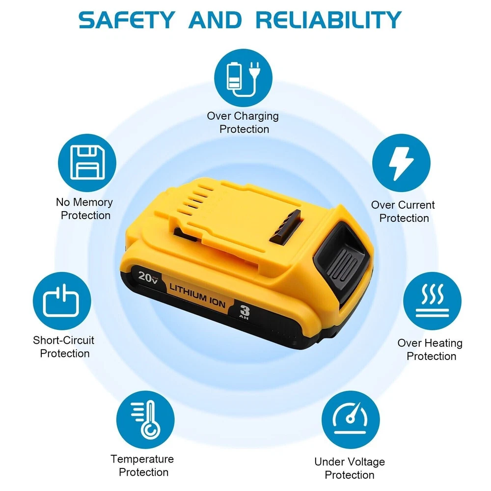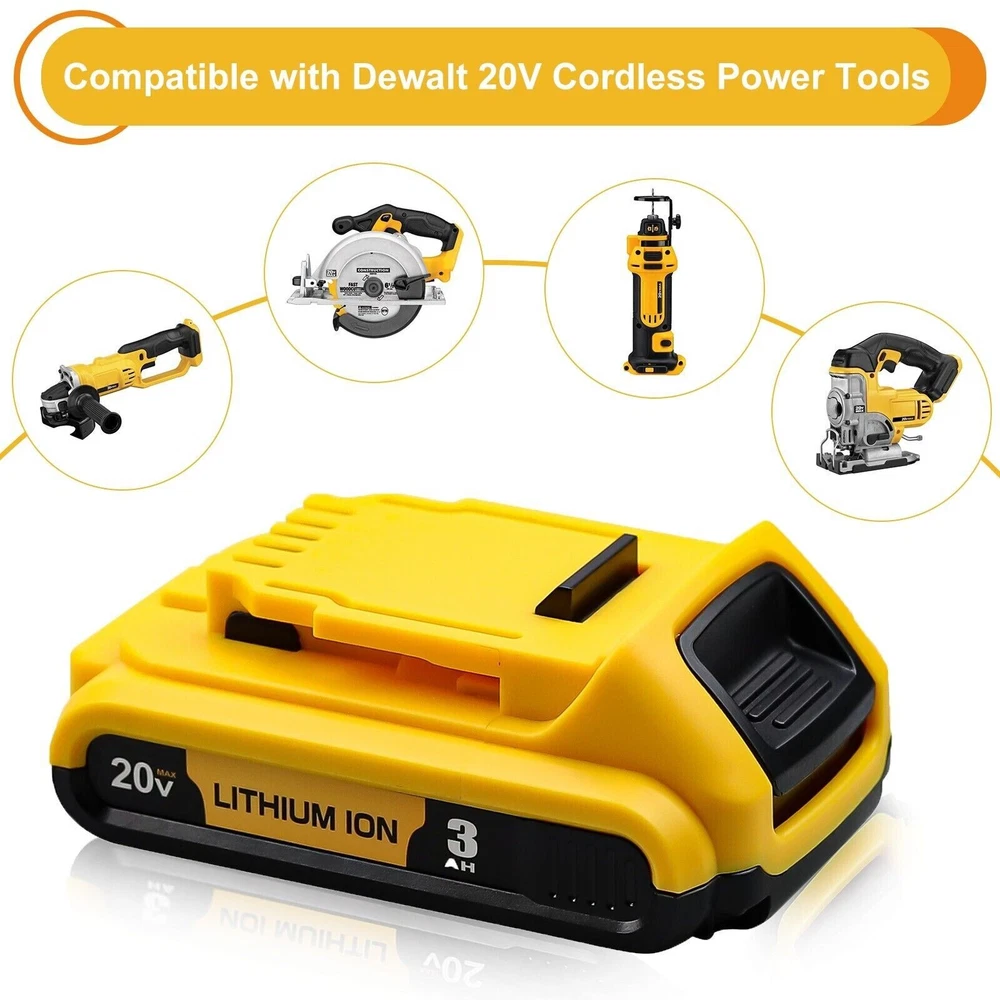 Product details: Battery Capacity: 3000 mAh Voltage: 20-Volt Color: red and black Brand: for Dewalt Battery Type: Lithium ion Condition: High Quality and Brand New Product Features: -Long life, has a very longer recharge cycles. -Brand New. -Products are CE certified. -High quality material was used. -The Lithium-ion battery has no memory effect, safe and durable. -The use of premium raw materials makes no harm to your health and no pollution. -The battery has over-current, overcharge, over-discharge protective. Replace Original Dewalt Battery Code: DCB180, DCB181, DCB182, DCB201, DCB201-2, DCB200, DCB200-2, DCB204-2, DCB205-2 This unit is compatible with the entire Line of DEWALT 20V MAX Tools: DCD Series: DCD740, DCD740B, DCD740C1, DCD740N, DCD780, DCD780B, DCD780C2, DCD776 , DCD780L2, DCD785C2, DCD785, DCD785M1, DCD785N, DCD785M2, DCD795D2 , DCD985B, DCD985L2, DCD985XR, DCD980L2, DCD980M2 DCF Series: DCF885C2, DCF885B, DCF883L2, DCF883B, DCF880C1-JP , DCF880, DCF880M2, DCF880C1-JP , DCF883B, DCF883L2, DCF883B , DCF885, DCF885B, DCF885C2, DCF885L2, DCF885L2, DCF885N , DCF886, , DCF895B, DCF895C2, DCF895L2 DCF895L2, DCF895 DCF895N DCG Series: DCG412, DCG412B, DCG412L2 DCS Series: DCS331B, DCS331L1, DCS331L2, DCS331N, DCS380N , DCS380L1, DCS381,DCS391B, DCS391L1,DCS393, DCS391L2, DCS391L1, DCS391N DCS391B, DCS381, DCS380L2, DCH214L2, DCK250P2 Package Include: 4x 20V 3.0Ah Li-ion Replacement Battery for Dewalt 1x User Manual