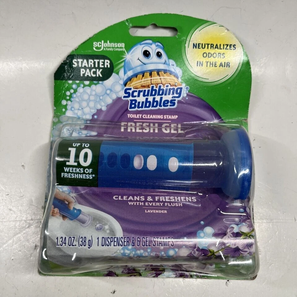5 Pack Scrubbing Bubbles Fresh Gel Toilet Cleaning Stamp Glade Lavender Meadow Packs may have slight damage but won't effect product.