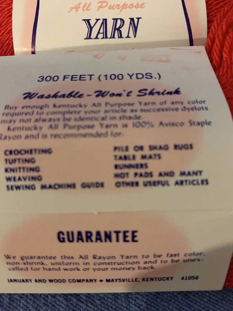 This yarn is suitable for crocheting, weaving, knitting and all sorts of crafts. Its 100 yards in each skein made of 100% Avisco Staple Rayon. The color on the photo is looking a little orange, but it is a beautiful fire engine red. I will combine shipping if someone is buying any of my other items.