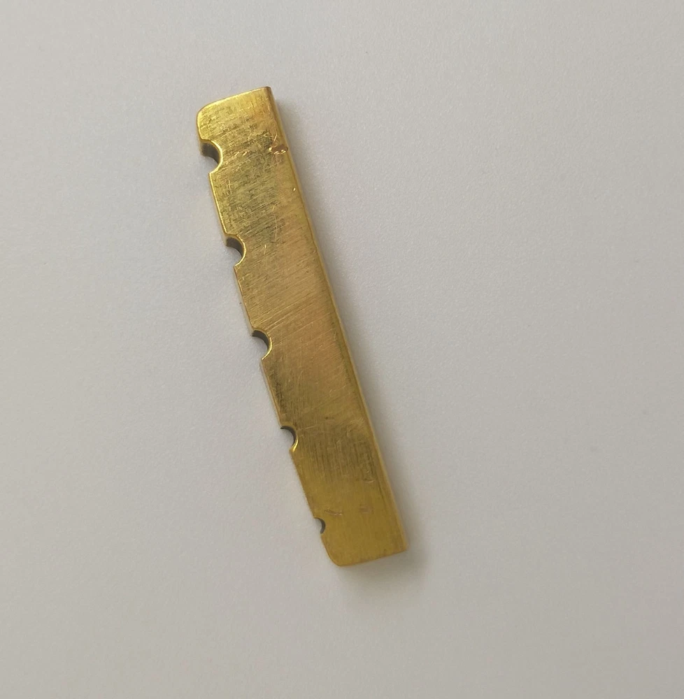 Feature: Made of brass, it can provides better tone than cheaper plastic parts Compatible for 5 String Electric Bass Material: Brass Size: 45x6mm Package included: 1x Brass Bass Nut We manufacture all kinds of instrument parts and conduct The direct model so that our price is very low with high quality Shipping & handling We guarantee to ship out within 48 hours after payment confirmation (except Holiday). We usually use the Register Air Post through Post Offer to send to you, it takes 7-16 working days on average to delivery items to buyer. Other European Union Nations and countries may take from 10-25 days due the slow postal services and strict custom clearances. We will ship to the address you entered during checkout processing, rather than your PayPal shipping address. Please make sure the shipping address is correct. We are not responsible for any wrong or undeliverable addresses. Seller reserves the rights not to ship to the unconfirmed address at any cases which is stated by PayPal. Payment will be refunded (PayPal payment) for unacceptable orders & those orders will also be cancelled from eBay. Postal insurance is offered for any postal loss and damage. We are not responsible for any uninsured items lost during the mail. Import duties, taxes and charges are not included in the item price or shipping charges. These charges are the buyer's responsibility, which can be searched at your country's related departments. Warranty Items must be returned back to us before we can issue a refund or replacement. Buyers have to pay for the return cost and we will pay the cost for resend. Refunds are only offered for defective products reported within 7 days upon receipt, only replacement is available after that. Shipping cost is non-refundable. Payment: Payment must be made within 7 days after the auction ends. We welcome PayPal, Pay instantly with your debit or credit card through PayPal. Feedback: Feedback & DSRs We depend on our eBay reputation and customer satisfaction to succeed. Therefore, Your feedback and DSRs are extremely important to us as better DSR scores affect our search placement on eBay.If you love my items please leave me good feedback and5 star DSR rating "". Your action will help us offer our milk and bread . I will do the same for you .If we have not given you reason enough for 5-star grades on each DSR then please let us know how we can earn your 5-star rating before submitting your scores! Return Policy: 100% Money back guarantee on each item, Return/Exchange within 7 days if dissatisfaction. You need mail the item back in the original condition, then get your money back. Shipping fees and return shipping charges are non-refundable. No exceptions! Non Pay Winner: By bidding, you agree to all our terms & conditions. If payment is not received within 4 calendar days after the close of this auction, you will automatically be in default and your right to the item(s) will be forfeited. We will then file a Non-Paying Bidder list to eBay, which can result in you being suspended indefinitely from eBay. If you find any quality problems when you receive the item(s) from us. Please email me soon. I will resolve it for you in 48 hours. (Full refund or exchange is valid in 60 days after the payment was confirmed)