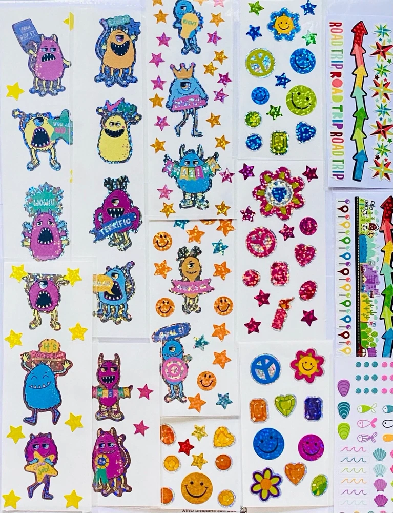 All stickers are BRAND NEW | Still in their original packaging! Mixed Sticker Lot | The Ultimate Kit | Qty. 500+ Stickers | High Quality Only! Fun Assortment of Puffy, Scrapbook, Cartoons, Bubble, Pop Up Stickers Packs For Everyone! You will receive 27+ Sticker Sheets of beautiful colorful assortment. I have included a large variety of pictures of the assortment available. The pictures give you an idea of what you will be receiving. Please Note: You will not receive everything pictured. Please contact me with any special requests. This HUGE Variety of fun designs stickers can be used in parties, classroom, school and home, good for reward for students, potty training, adding inside a birthday card, game activities, entertaining toddlers, etc. Perfect Gifts for Kids & all Occasions: Can be given as a gift for kids, girls, boys, toddlers, teens, students, friends, and classmates, they will love it! Each package of stickers is a different style & theme with some lovely embellishments like rhinestones, ribbons, buttons and other 3D details that make these quality stickers look so unique!