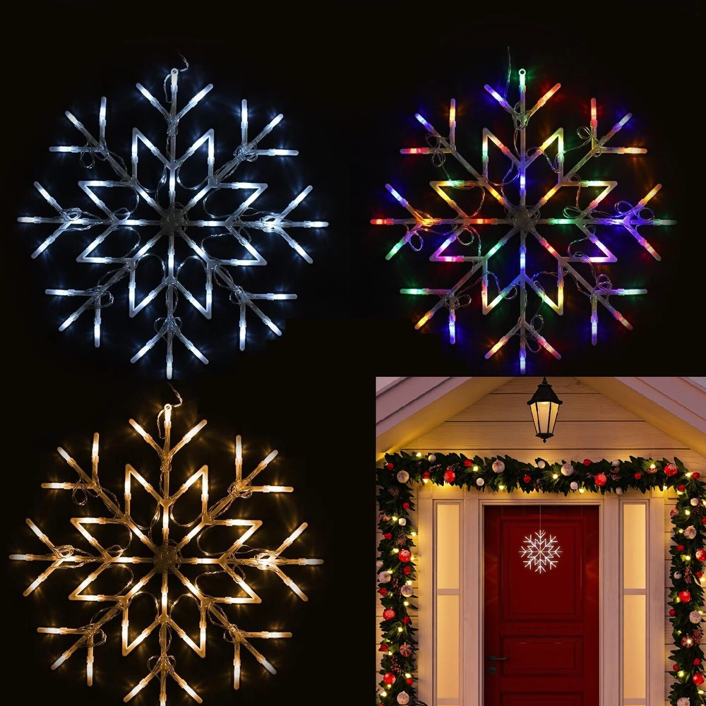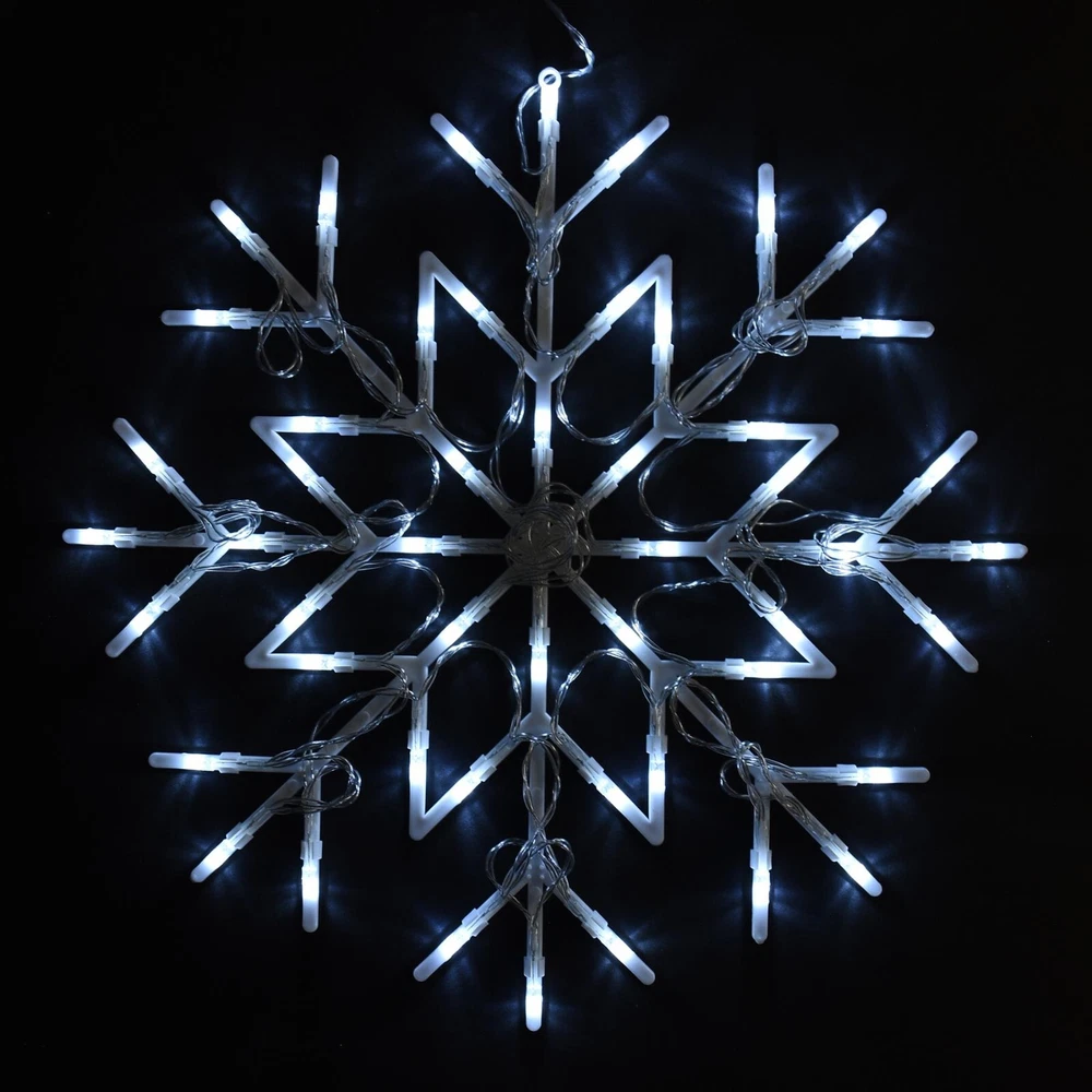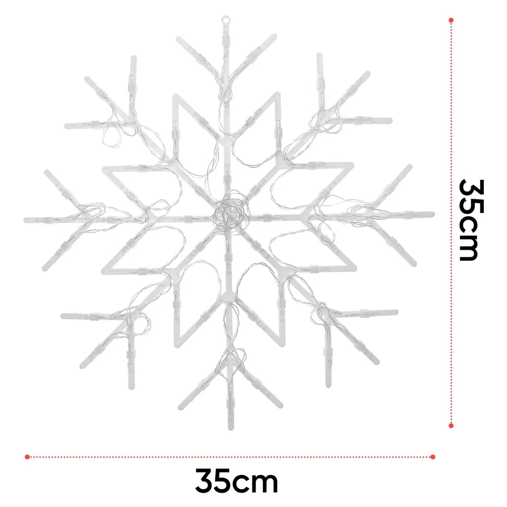 50 LED WINDOW SNOWFLAKE Fairy Light Up Home Party XMAS Christmas Decoration Star Description: 50 Led Snowflake Lights, 50 Super Led Lights Multi Colour Change Led Light For Indoor Use Only Ideal For Decorations, Festival, Parties, Weddings Etc Total Wire Length : 40 Cm Requires 2 x AA Batteries (Not Included) Dimensions Approx: 35 x 35 cm