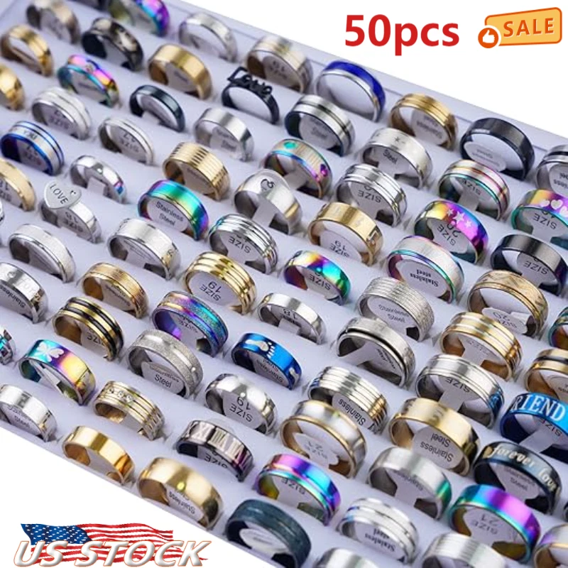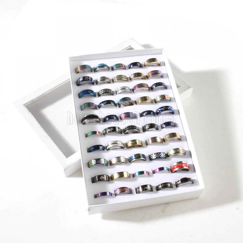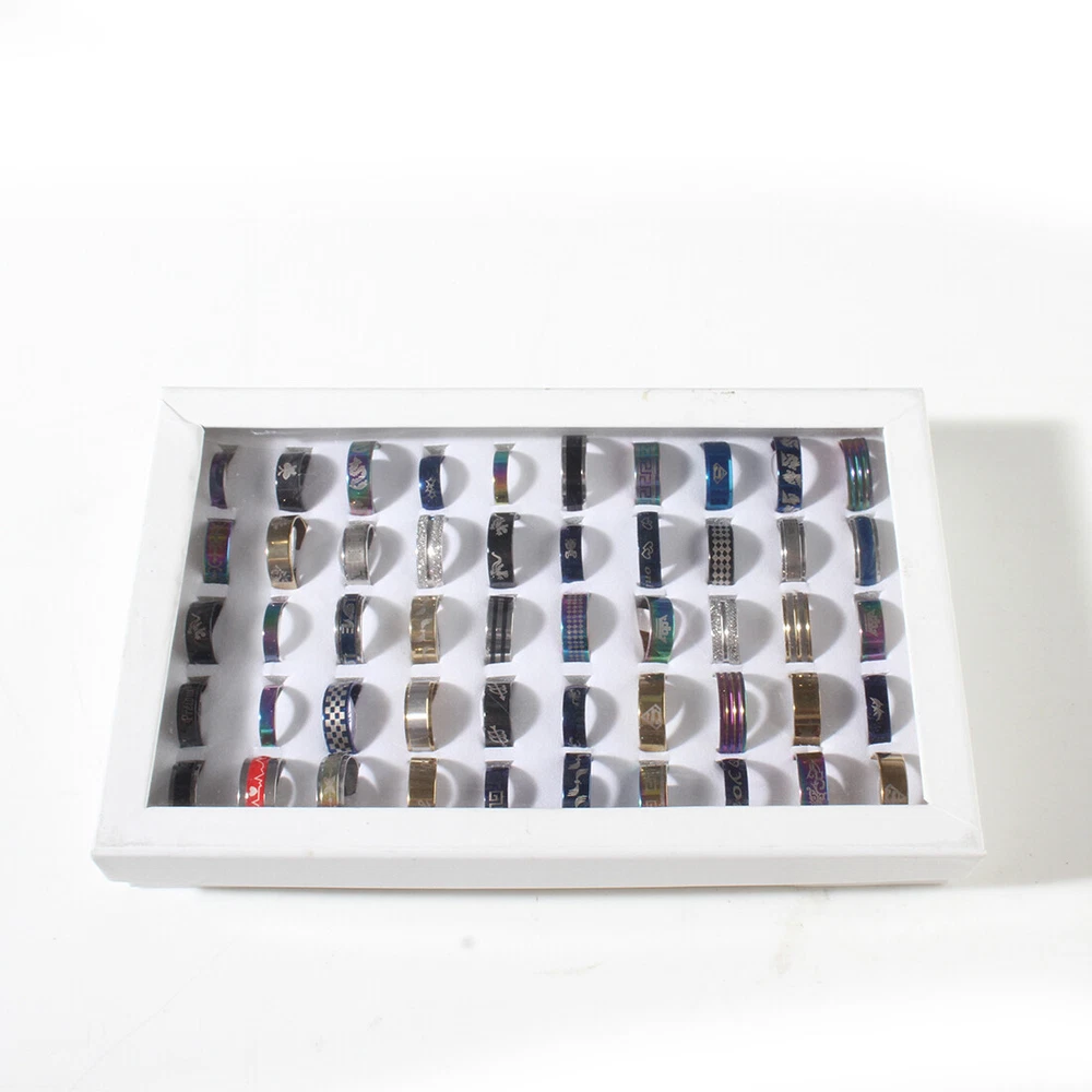 Feature: Name:50Pcs/ Lot Mix Styles Stainless Steel Finger Rings Men Women's Fashion Jewelry Details: Stainless Steel Finger Ring, mixed, 4x18mm-11x24mm, US Ring Size:5.5-10, 100PCs/Box, Sold By Box Color:As picture Approx Size: 4x18mm-11x24mm Package Included: Packing: 50PCs/Box About US We will reply the message asap once we received your message, Usually reply within 24h.Expect Public Holiday. If it has some problem with the item, pls don't open the return, and we will solve the problem for you asap Payment Method We Suggest that Pay via Paypal Pleaes Pay for the item within 3 days after the bidding or purchase. E-Check Payments requires 2-4 business days to clear before we can process the order. Unpaid Item will lead to Ebay Unpaid Strike Case. Shipping Policy 1.How much is shipping and handling (S&H)? The shipping and handling costs will be clearly marked on the auction item page. 2.Please make sure the Ship-To address you type during checkout is correct. We are not responsible for any wrong or undeliverable addresses. 3.Local pick up is not available. 4.Items are generally shipped out the next business day after your payment has been cleared (Sat. & Sun. excluded.). 5.An e-mail will be sent to your eBay e-mail address upon item is shipped out. If you do not receive this e-mail in 48 Business Hours, please contact us to check the status of your transaction. . 6.International Buyers - Please Note: Import duties, taxes, and charges are not included in the item price or shipping cost. These charges are the buyer's responsibility. Please check with your country's customs office to determine what these additional costs will be prior to bidding or buying. Customs fees are normally charged by the shipping company or collected when you pick the item up. These fees are not additional shipping charges. Returm&Warranty 1.Our items come with one or two-year warranty. 2.Our warranty does not extended to any products that are physically damaged or that are not under normal operating conditions as a result of misuse or improper installation on the buyer/user's part. 3.This product comes with 30-Day Money Back Guarantee. 4.We stand behind every product we sell. If you're not pleased with your purchase, we'll be happy to make an exchange or refund. 5.For all returned products, please contact us for the returning address. Respond 1.ALL replies will be sent to your email, if you don't get response within 1-2 business days, pls check your My Messages in case your email provider has an overly-aggressive spam filterblocking eBay's emails. Please email us AGAIN. 2.Email is the priority of our customer service. Customer Service 1.Your better comments will be an encouragement for us to offer the better quality and the better service in future. 2.If you are not satisfied with them, please contact us first via Ask a Question or via Contact Seller. Your messages will be answered within 1-2 business day. We shall try our best to solve your problem to your satisfaction. On 22-Mar-22 at 10:25:26 GMT, seller added the following information: