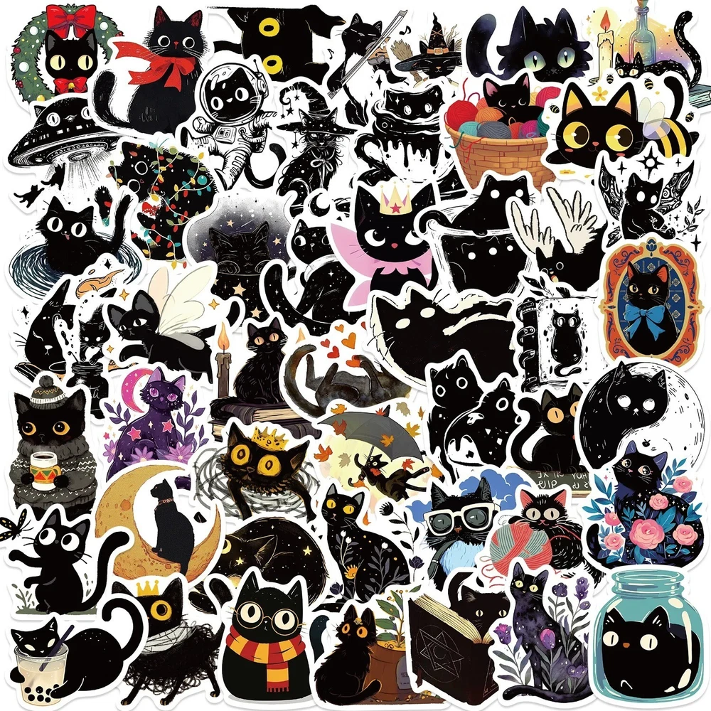 50pcs Cute Black Cat Stickers Aesthetic Scrapbooking Materials Diary Decorating For Keyboard Phone Planner Feat ures: Waterproof,These waterproof stickers resist moisture, ensuring your creations stay vibrant. Usage: Versatile,Ideal for personalizing laptops, phones, skateboards, and more with a touch of whimsy. Quantity: 50pcs,Enjoy a generous set of 50 cute black cat stickers to decorate all your items. Support: Emerging Artist,By purchasing these stickers, you support an emerging artist's passion for art. Material: Synthetic Paper,Crafted from premium synthetic paper, these stickers offer durability and a smooth finish.