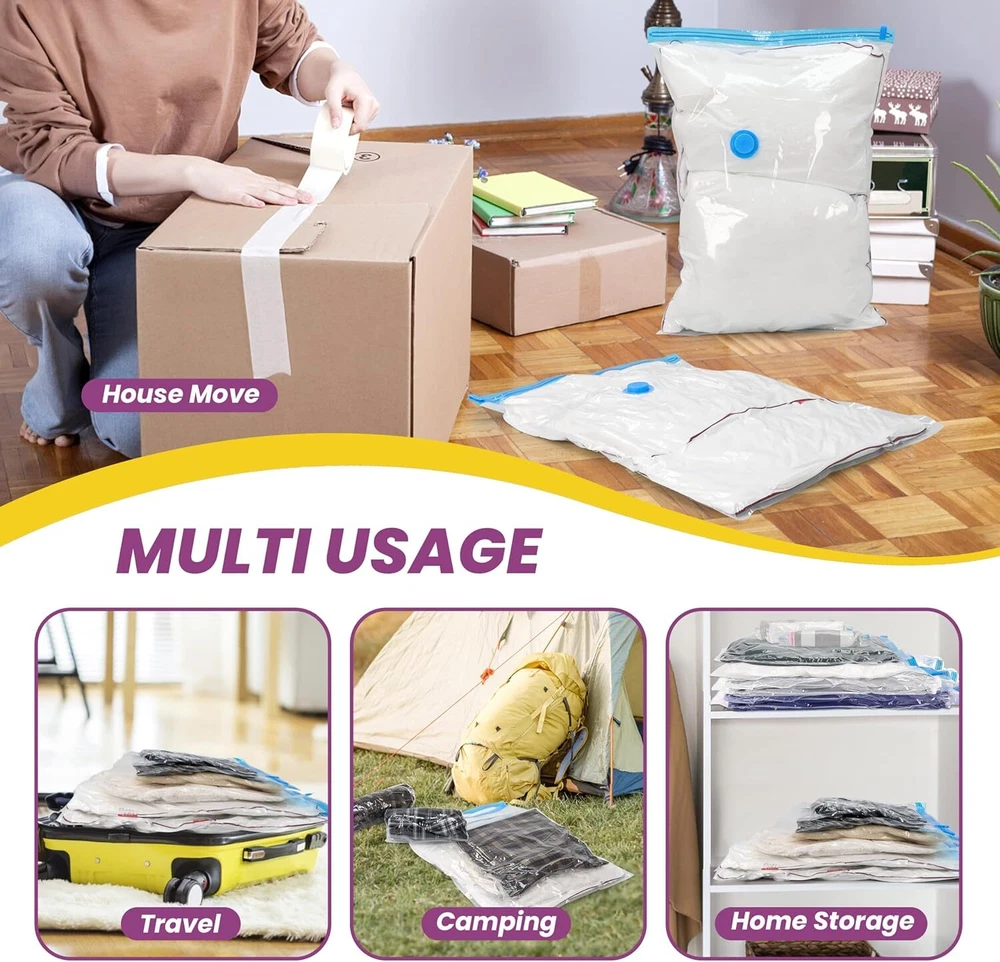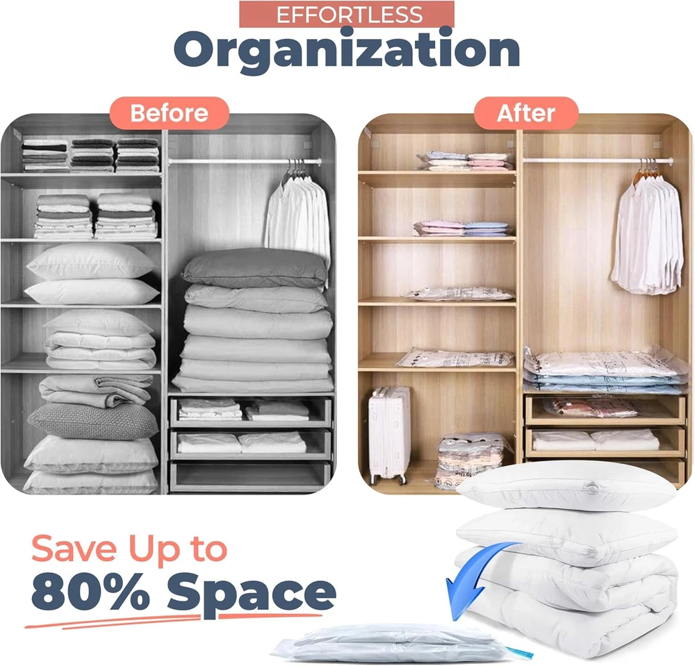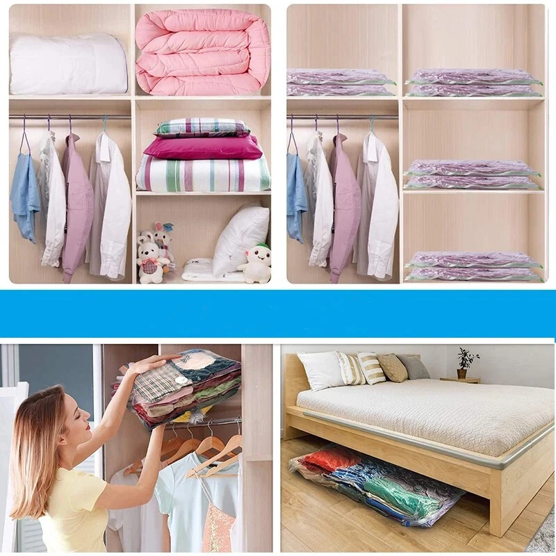 5/10 Pcs Vacuum Storage Bags Travel Space Saver Garment Seal Clothes Hand Pump
