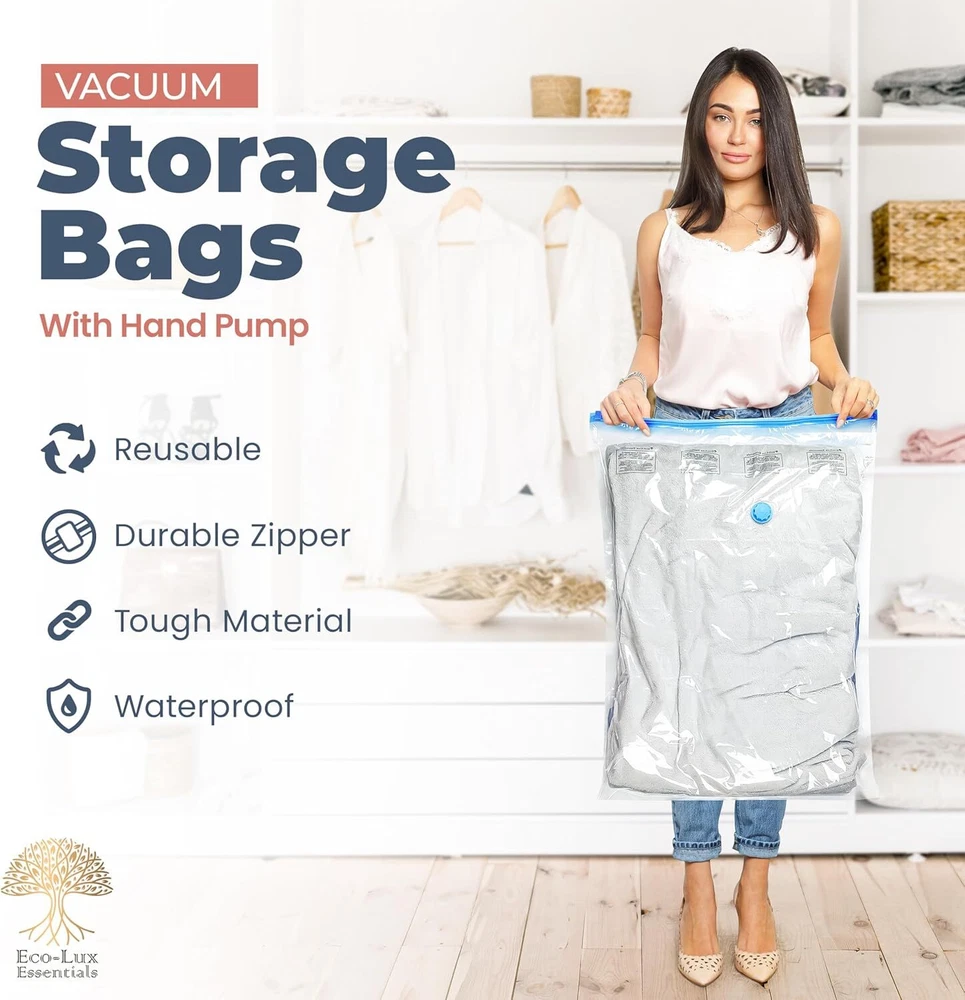 Features Maximize Storage Space: Our vacuum storage bags increase your storage capacity by up to 80%, making them an excellent solution for maximizing wardrobe, loft, and suitcase space. Ideal for clothes, comforters, pillows, duvets, beddings, and more. Long-lasting Protection: With robust double-zip sealers and triple-sealed turbo valves, our space-saving bags effectively vacuum out air and stay compressed and fresh, providing effective, long-term storage. Durable Construction: Crafted from an extra-thick blend of PA+PE materials, these vacuum-sealed storage bags offer excellent protection against dirt, dust, and potential damage to your stored items. Convenient Hand Pump Included: This combo pack includes an easy-to-use hand pump for quick air vacuuming. These vacuum seal bags are also compatible with all standard vacuum cleaners and can be reused multiple times for added convenience. Different sizes. Meet all needs. What's in the Package 5 x Bags 1 x Hand Pump Welcome to my e B a y store If you are interested in this product, please add it to your cart and we will send you an email when we have a major offer. Thanks! Please note that due to differences between computer monitors, colors may not be exactly the same as in real life. NOTE: This clothing size information is just for reference only,please allow 2-3cm (2.54cm=1inch) differences due to manual measurement. Promotions / Discounts There is currently an in-store promotion where you will automatically receive a 5%-20% discount when you purchase 2 or more items from the list or from our store. Shipping We ship worldwide. Items will be shipped within 1-2 business day after payment is received. Items are shipped by USPS - First Class Package (Standard 3-5 Business Days) business days. Delivery time depends on destination and other factors, it may takes up to 10-20 business days. If could connect us if package delay. Returns All items can be returned within 30 days of receipt. Please make sure this is the item you want before you buy. Customer satisfaction is our top priority. Return shipping costs are borne by the buyer Payment We only accepting payment through Paypal, apologize for any inconvenience. All major credit cards are accepted through secure payment processor PayPal Payment must be received within 7 business days after your bid. If you've bought multiple items from me, please connect me resend the invoice to save postage. Communication and Feedback. Your five-star reviews help us grow and improve our business, and help us keep eBay fees down. Please give us positive feedback when the item arrives and you are satisfied. Please contact us before leaving any neutral or negative feedback. We always consider our customers to be our number one asset. Please feel free to let us know if there are any problems or inquiries with an item and we will take care of it for you. so that we can resolve the issue in the best way possible without having to open a case through eBay and without negative feedback. We will leave (100%) positive feedback as soon as payment is received. We will reply all your questions within 24 hours.