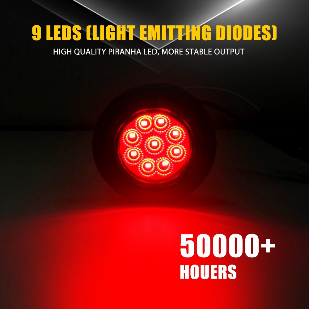 Fit for: Universally fit any vehicles with DC 12V-24V such as Semi Truck & Trailer, Service Truck, Bus, Service Van, Utility Truck, Parade Float, Horse Trailer, Utility Trailer, Pick Up Truck, UTE, UTV. Specifications: Product Material: ABS+PC Suitable Voltage: 12-24V Lens Color: Red/White/Amber Light Color: Red/White/Amber Wiring Connections: White Wire: Negative Black Wire: Positive Connector Type: Pigtail Mounting Type: Flush-Mount Waterproof Rate: IP67 Lifespan: 50,000h+ Features: *High Brightness Each LED light bright enough and energy-saving. *Superior Quality 5/10PCS 2Inch DOT Round LED Trailer Marker Lights with Grommet for Truck Fit for: Universally fit any vehicles with DC 12V-24V such as Semi Truck & Trailer, Service Truck, Bus, Service Van, Utility Truck, Parade Float, Horse Trailer, Utility Trailer, Pick Up Truck, UTE, UTV. Specifications: Product Material: ABS+PC Suitable Voltage: 12-24V Lens Color: Red/White/Amber Light Color: Red/White/Amber Wiring Connections: White Wire: Negative Black Wire: Positive Connector Type: Pigtail Mounting Type: Flush-Mount Waterproof Rate: IP67 Lifespan: 50,000h+ Features: *High Brightness Each LED light bright enough and energy-saving. *Superior Quality Made of high quality material to ensure its low energy consumption, good waterproof and shock resistance. *Waterproof The light has IP67 waterproof rate, which works even under extreme conditions such as rain and snow. *Wide Application This LED light can be used in any vehicle with DC 12V-24V, such as a Semi Truck and trailer, Service Truck, Bus, Service Van, Utility Truck, Parade Float, Horse Trailer, Utility Trailer, Pickup Truck, UTE, or UTV. *Warm Notice Please check the detail information of the product carefully before purchasing. Packaging Include: 5/10 x 2" Round 9 LED Clearance Side Marker Light 5/10 x 2.8" Round Black Grommet 5/10 x 2-Pin 90° Plugs connector Item Specifics Brand AUXITO Manufacturer Warranty 5 Years Voltage 10-26V DC Connector Type Pigtail Lens Cover Color Red Lens Cover Material Plastic Mounting Type Flush-Mount Light Color Red Mounting Hardware Grommet Housing Material Plastic, (rubber grommet) Placement on Vehicle Front, Rear, Left, Right Features Waterproof, Sealed Assembly, Easy Installation Number of LEDs 9 IP Rating IP67 Lens Color Red Type Light Bulb Lighting Technology High quality advanced LED chips Material ABS PC Lifespan 50,000h+ Waterproof Rate IP67 OE/OEM Part Number no Payment Returns DESCRIPTION PAYMENT SHIPPING RETURN POLICY CONTACT US Shop Category Store Home LED Headlight ◈ H4 ◈ H13 LED Reverse Light ◈ T15/921/W16W LED Side Marker Light Car Parts & Accessories Tail Light assemblies Other Hot Item Picture New List Item Super Bright 22000LM LED H11 Headlight Low Beam Bulb Pure White Canbus 1-10Set USD 35.99 M3 Clear White 6500K Headlight LED 9005 HB3 High Beam Bulb Autopart Car 1-10Set USD 35.99 HB4 9006 LED Bulbs Headlight Low Beam 200W 24000LM Super Bright QC 1-10Set USD 32.99 4~20 Amber LED Marker Side Light For RV Trailer Truck Clearance Light Waterproof USD 27.99 2X AUXITO 7443 SMD 7440 LED Back Up Reverse Light Bulbs 6500K Super White Canbus USD 11.59 Help & Info Payment Policy Shipping Policy Return Policy FAQ About Us 5/10PCS 2Inch DOT Round LED Trailer Marker Lights with Grommet for Truck Fit for: Universally fit any vehicles with DC 12V-24V such as Semi Truck & Trailer, Service Truck, Bus, Service Van, Utility Truck, Parade Float, Horse Trailer, Utility Trailer, Pick Up Truck, UTE, UTV. Specifications: Product Material: ABS+PC Suitable Voltage: 12-24V Lens Color: Red/White/Amber Light Color: Red/White/Amber Wiring Connections: White Wire: Negative Black Wire: Positive Connector Type: Pigtail Mounting Type: Flush-Mount Waterproof Rate: IP67 Lifespan: 50,000h+ Features: *High Brightness Each LED light bright enough and energy-saving. *Superior Quality Made of high quality material to ensure its low energy consumption, good waterproof and shock resistance. *Waterproof The light has IP67 waterproof rate, which works even under extreme conditions such as rain and snow. *Wide Application This LED light can be used in any vehicle with DC 12V-24V, such as a Semi Truck and trailer, Service Truck, Bus, Service Van, Utility Truck, Parade Float, Horse Trailer, Utility Trailer, Pickup Truck, UTE, or UTV. *Warm Notice Please check the detail information of the product carefully before purchasing. Packaging Include: 5/10 x 2" Round 9 LED Clearance Side Marker Light 5/10 x 2.8" Round Black Grommet 5/10 x 2-Pin 90° Plugs connector Payment Returns All rights reserved. On Feb 7, 2025 at 19:21:48 PST, seller added the following information: