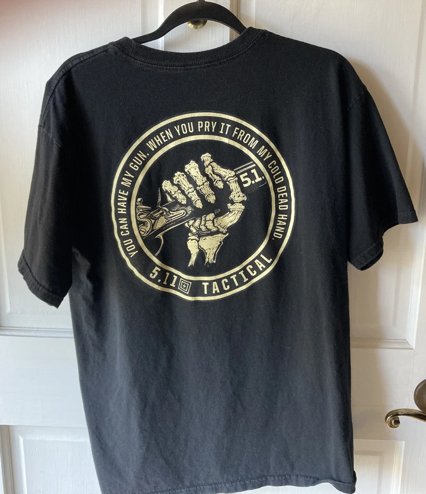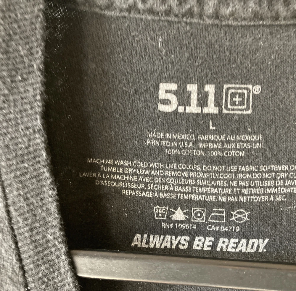 Introducing the 511 Tactical ABR Men's T-Shirt in size L with short sleeves, perfect for any occasion. The shirt features a solid pattern with a crew neckline and a black color, made of cotton material and knit fabric type. It has a double-sided design with the logo accent and is machine washable for easy care. The shirt is a regular fit and is part of the 511 product line, model ABR 511, made in Mexico. This shirt is perfect for anyone who wants to show their love for the USA and the warrior character. It is suitable for all seasons, including winter, summer, fall, and spring. Personalization is not available, but the shirt is in great condition and ready to wear. Order now to add this amazing 511 Tactical ABR Men's T-Shirt to your wardrobe. In good Preowned condition