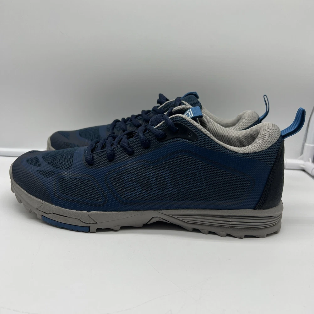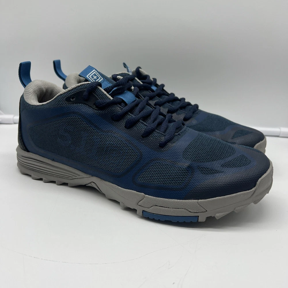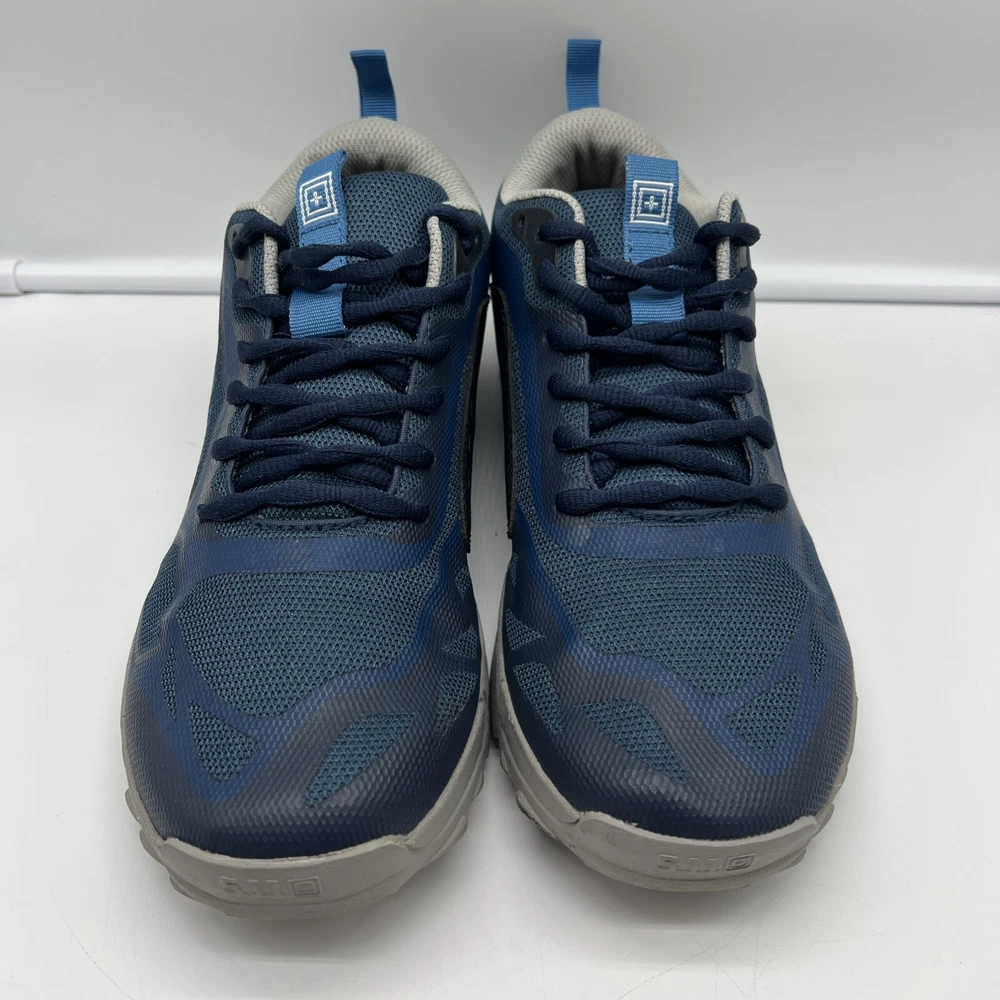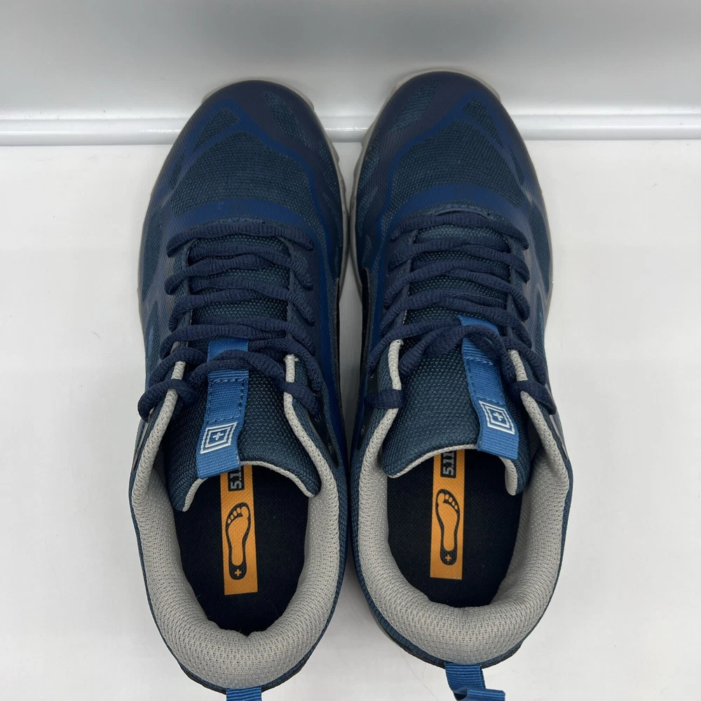 Elevate your workout game with these 5.11 Tactical ABR Trainer Running Shoes in Men's size 7.5. The shoes feature a solid blue and gray color scheme with a low top shaft style and lace-up closure. They are ideal for various athletic activities, including gym and training, walking, school, cross-training, CrossFit, and running and jogging. The shoes are made of lightweight and breathable synthetic material, making them comfortable and perfect for any season. They have a standard shoe width and are designed with performance and comfort in mind. Whether you're looking for athletic, athleisure, classic, fitness, gym, sports, or vintage shoes, these sneakers have got you covered.