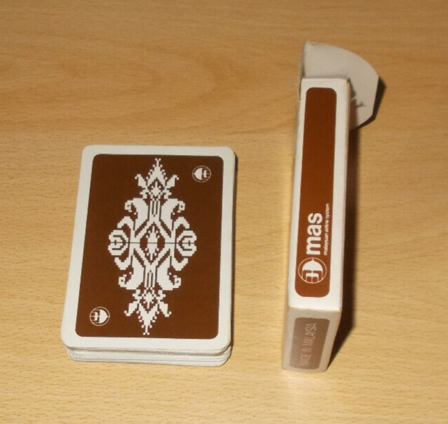 52 PACK OF PLAYING CARDS PLUS THE 3 JOKERS. CARDS HARDLY USED WEAR & DISOLOURATION TO THE BOX & A FEW SPOTS ON A FEW OF THE CARDS ASWELL VERY GOOD FOR AGE AS PICTURED