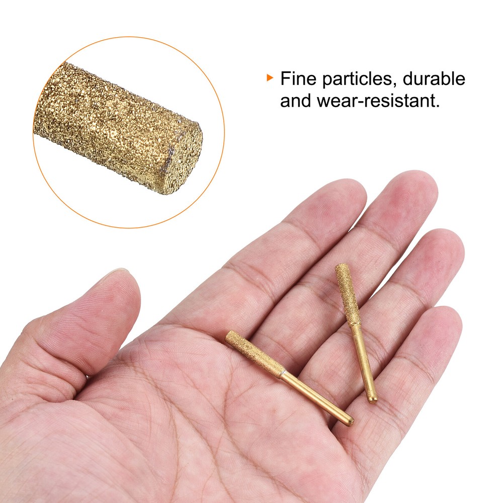 Document This stone file is suitable for surface graining, polishing, etc. of various materials such as metal, stainless steel, steel, copper, wood, and plastic. These diamond chainsaw sharpeners are widely used for grinding saw teeth, glass, jade, models, bearings, machinery, and metal rust removal.SpecificationColor: GoldenMaterial: DiamondSurface Treatment: Titanium Plating Grinding Head Size: 20 x 4mm / 0.79 x 0.16 inch(L*D)Shank Diameter: 3mm / 0.12 inchTotal Length: 45mm / 1.77 inchPacking List: 6 x Sharpening StonesAdvantage1. These chain saw sharpeners are forged with diamonds, they adhere tightly to the surface and are not easy to fall off. The particles are full and evenly distributed, which ensures the stable and efficient grinding of the chainsaw, and is hard and not easy to wear.2. Wheel grinder replacement is easy to install and can be sanded without removing the chain. The grinding tool accessories save time and effort, and can effectively improve work efficiency, allowing you to complete grinding as soon as possible.InstructionHold the handle and place the grinding head on the surface to be sanded and rub it back and forth.NOTE: Please check the size carefully before purchasing. 5/32 Inch Diamond Chainsaw Sharpener, 6 Pack Titanium Plating Stone, Golden This stone file is suitable for surface graining, polishing, etc. of various materials such as metal, stainless steel, steel, copper, wood, and plastic. These diamond chainsaw sharpeners are widely used for grinding saw teeth, glass, jade, models, bearings, machinery, and metal rust removal. Specification Color: Golden Material: Diamond Surface Treatment: Titanium Plating Grinding Head Size: 20 x 4mm / 0.79 x 0.16 inch(L*D) Shank Diameter: 3mm / 0.12 inch Total Length: 45mm / 1.77 inch Packing List: 6 x Sharpening Stones Advantage 1. These chain saw sharpeners are forged with diamonds, they adhere tightly to the surface and are not easy to fall off. The particles are full and evenly distributed, which ensures the stable and efficient grinding of the chainsaw, and is hard and not easy to wear. 2. Wheel grinder replacement is easy to install and can be sanded without removing the chain. The grinding tool accessories save time and effort, and can effectively improve work efficiency, allowing you to complete grinding as soon as possible. Instruction Hold the handle and place the grinding head on the surface to be sanded and rub it back and forth. NOTE: Please check the size carefully before purchasing. Hot Item Payment 1.We accept eBay payment . 2.Payment must be received within 7 business days of auction closing. Shipping 1.We ship to your eBay or Paypal address. Please make sure your eBay and Paypal address is correct before you pay. 2.Items will be shipped within 1-3 business day when we received payment. 3.Delivery time depends on destination and other factors. Description Policy 5/32 Inch Diamond Chainsaw Sharpener, 6 Pack Titanium Plating Stone, Golden This stone file is suitable for surface graining, polishing, etc. of various materials such as metal, stainless steel, steel, copper, wood, and plastic. These diamond chainsaw sharpeners are widely used for grinding saw teeth, glass, jade, models, bearings, machinery, and metal rust removal. Specification Color: Golden Material: Diamond Surface Treatment: Titanium Plating Grinding Head Size: 20 x 4mm / 0.79 x 0.16 inch(L*D) Shank Diameter: 3mm / 0.12 inch Total Length: 45mm / 1.77 inch Packing List: 6 x Sharpening Stones Advantage 1. These chain saw sharpeners are forged with diamonds, they adhere tightly to the surface and are not easy to fall off. The particles are full and evenly distributed, which ensures the stable and efficient grinding of the chainsaw, and is hard and not easy to wear. 2. Wheel grinder replacement is easy to install and can be sanded without removing the chain. The grinding tool accessories save time and effort, and can effectively improve work efficiency, allowing you to complete grinding as soon as possible. Instruction Hold the handle and place the grinding head on the surface to be sanded and rub it back and forth. NOTE: Please check the size carefully before purchasing. Hot Item Payment 1.We accept eBay payment . 2.Payment must be received within 7 business days of auction closing. Shipping 1.We ship to your eBay or Paypal address. Please make sure your eBay and Paypal address is correct before you pay. 2.Items will be shipped within 1-3 business day when we received payment. 3.Delivery time depends on destination and other factors.