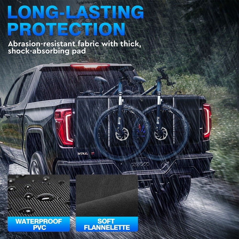 This tailgate bike pad is a game-changer for transporting multiple bikes! The adjustable straps keep up to five bikes secure, while the thick padding protects both your truck and bicycles. The reflective strips add safety, and the handy tool pocket is a nice bonus. Super easy to install and remove—perfect for mountain bikers who need reliable transport. Highly recommend for outdoor adventures!