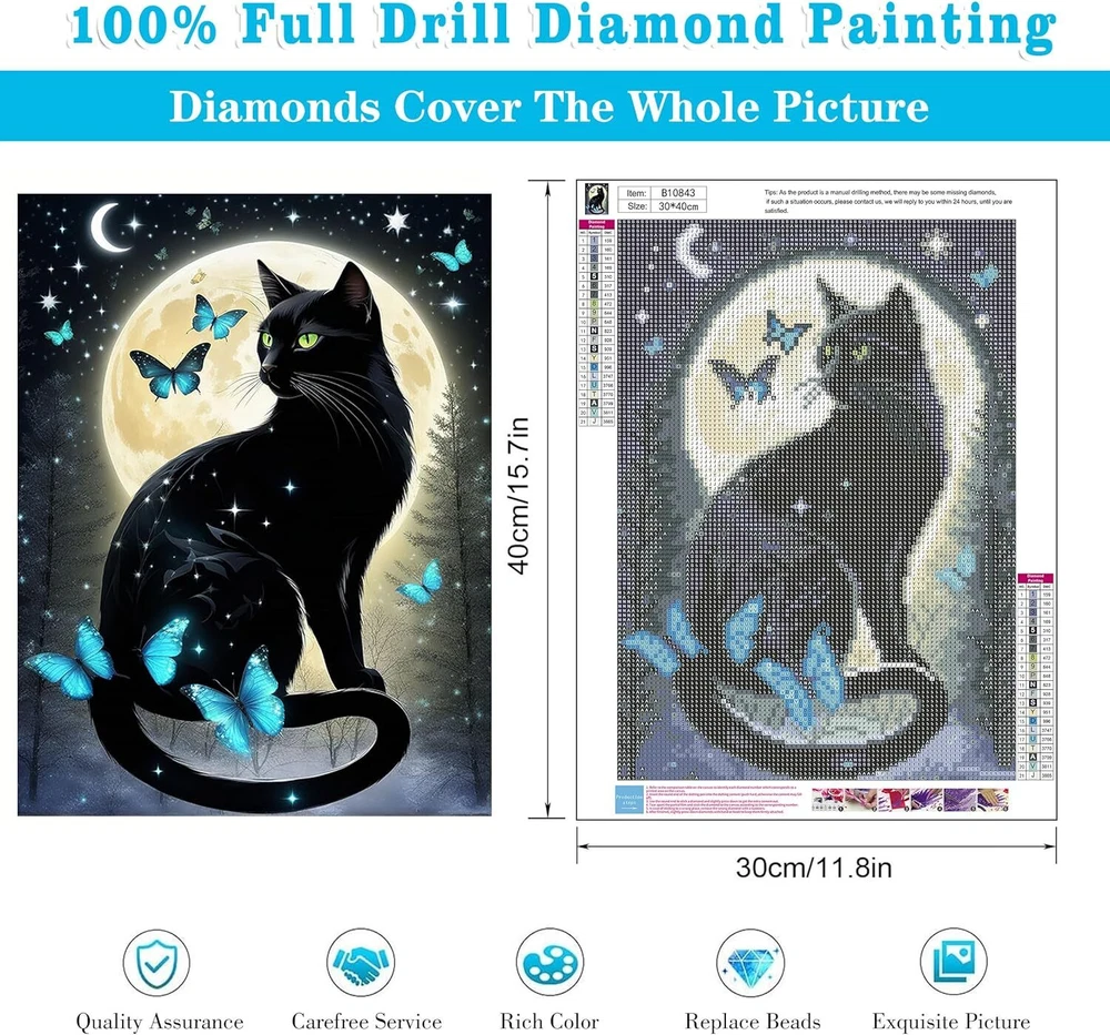 Store New Arrivals Add to Favorite View Feedback Contact 5D Black Cat Diamond Art Kits for Adult Beginners Moon Cat Diamond Painting Kits Description Item model number Moon Cat Butterfly Item dimensions L x W x H 9.2 x 4.2 inches Age Range (Description) Adult Color B10843 Included Components diamonds and high-quality canvas Material Canvas Country of Origin China Style Art Deco Item Weight 0.1 ounces Theme Cat Model Name GMZS-127 Seasons All Seasons Art Craft Kit Type Diamond Art Kits Number of Pieces 1 Special Feature Includes 30% more diamonds compared to standard diamond painting kits Cartoon Character Cat Diamond Painting 【30% more diamonds】This diamond art kit for adults is 100% full diamonds, individually packaged diamonds (30% more diamonds), round dots, so you can use more frustrated than square diamond painting Diamonds are painting. 【High quality canvas】 Our diamond painting kits use high-quality canvas, the canvas is clear, waterproof, without creases, the letter symbols are clear and easy to understand, the DMC code on the canvas corresponds to the color of the drill bit, and the canvas uses environmentally friendly water-based glue, which is strong. Make sure that the drill bit will not fall off. 【Add joy to life】5d diamond painting crystal rhinestone kits can regulate emotions and relieve stress. It can also cultivate patience, enhance practical skills, and share happy time with family or friends. Simple DIY diamond painting can experience the sense of accomplishment, enhance self-confidence and perseverance, suitable for people of all ages. 【Best gift】 Diamond painting is a great gift for adults, you can give it as a gift to your family, friends, colleagues at Christmas, Thanksgiving, birthday, you can also make custom diamond art together to enhance your feelings. experience a sense of achievement, release stress, emotional adjustment, enhance self-confidence and perseverance cultivate patience. Our diamond painting kits also can be used to decorate your house or office room. 【After sales service】Our gem art are all high-quality products. Bright colors, clear pictures and symbols, perfect for beginner. If you have any problems, such as missing diamonds or tools, please contact us immediately by email and we will reply within 24 hours. Product Description INSTRUCTION FOR DIY 5D DIAMOND PAINTING KITS FOR ADULTS 1 Open diamond painting kits and check the diamond painting tools. 2 Read the number on canvas and find the same number on your diamond bag. 3 Take some glue onto the top of your pen. 4 Pull out diamonds that you need onto the diamond tray. Get matching diamond dots from diamond tray with the help of the pen. 5 Stick the dimond onto the canvas. 6 The rest of the diamonds can be put inside the plastic bag. 7 When finish your 5D diamond art kits, don't forget to press your art work, which can make your painting more fixed. What should I do if I don't have enough diamonds? We will provide an additional 30% of diamonds. If you lose diamonds or don't have enough diamonds during painting. You can tell us through the order, and we will solve it for you! Does it come with a frame? The product does not contain a frame. It is just a canvas. Warm Tips! Please DO NOT put the diamonds in place where children can easily access, so as to avoid being swallowed by them. ABOUT US We offer the best prices around on high quality products. Our E-store includes media such as books, movies, music and games while offering electronics, toys, sporting apparel, clothing, tools, general home, garden items and more. SHIPPING We are always working hard to ensure your package arrives as soon as possible. Please understand that some factors like weather, high postal traffic, and the performance of shipping companies are outside of our control. We offer free shipping to the lower 48 states and ship within 2 business days of payment, usually sooner. We do not accept P.O. Boxes. Please provide a physical address. For shipping outside of the continental USA, we only use eBay's Global Shipping Program.The item is shipped to KY and then sent to the rest of the world. International customers are responsible for all duties and taxes. Continue to check out in order to calculate costs for shipping the item to your country. Messages regarding eBay's Global Shipping Program MUST be directed at eBay EXCLUSIVELY. RETURNS We offer a 30-Day Return Policy on items which you are not completely satisfied with. You have the option for a full-refund or an exchange of the item. No returns are available on items shipped outside of the USA. PAYMENT We accept PayPal. CONTACT US This page content is yet to come Please ad us to your favorite seller and visit again later Thank You CUSTOMER SATISFACTION We try our very best to make sure every customer is completely satisfied. If there's a problem, message us! We're happy to help.