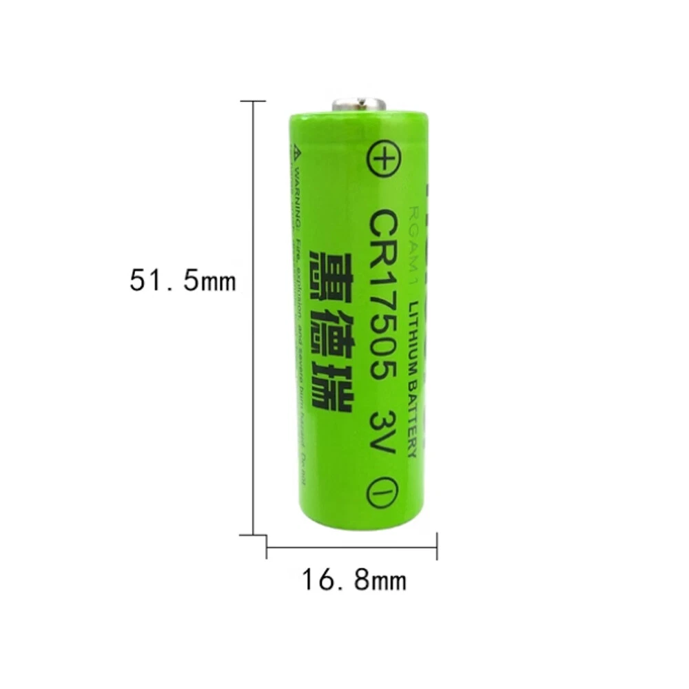 Parameter: Model: CR17505 Voltage: 3.0V Capacity: 2800mAh Size:51.5*16.8mm Battery type: non-rechargeable lithium battery Package include : 5pcs Battery