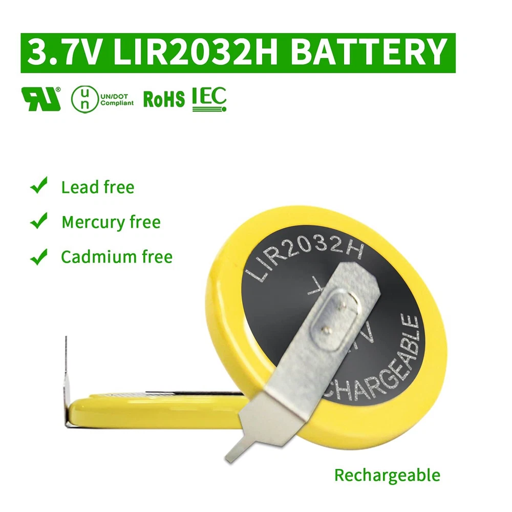BASIC INFO—VOLTAGE: 3.7V; Capacity: 70mAh; Weight: approximate 3.15g; Diameter: 20mm, Height: 3.2mm. Packing included: LIR2032H Battery with Solder Tabs X 5 CERTIFICATIONS—Safety test by UL: IEC 62133. More than 400 battery models are UL certified. Search "MH20555" on UL for all UL certification information. QUALITY SERVICE—Manufacturer direct with local service in California. Please us if you have any questions or concerns with the product via message. We will respond to you within 24 hours. STORAGE—No leak, excellent cost performance and long cycle life. Keep the cells in 40%-60% charged state during long period storage. We recommend to charge the battery every 3 months after receipt of the battery and maintain the voltage, and the battery in a cool and dry place. Please keep out of reach of children. Do NOT SWALLOW. APPLICATION—Suitable for Computers, PDA and IC cards, electronic clocks and watches, wearable electronic devices, tracking units, monitoring units, remote control keys, digital cameras, Bluetooth speaker, RC toys.