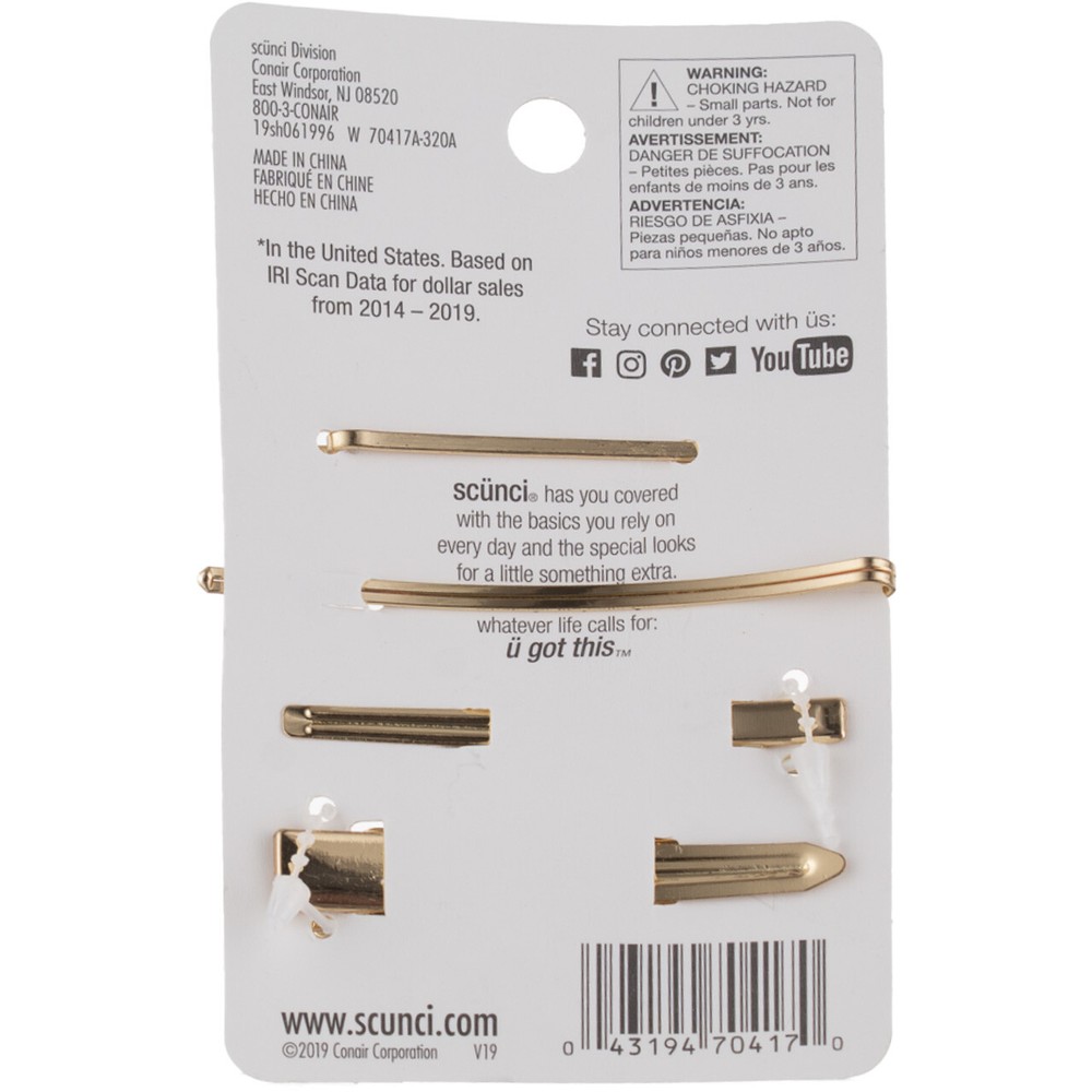 5-Pack Scunci Metallic Gold Trend Alert Hair Pins, 4 Count