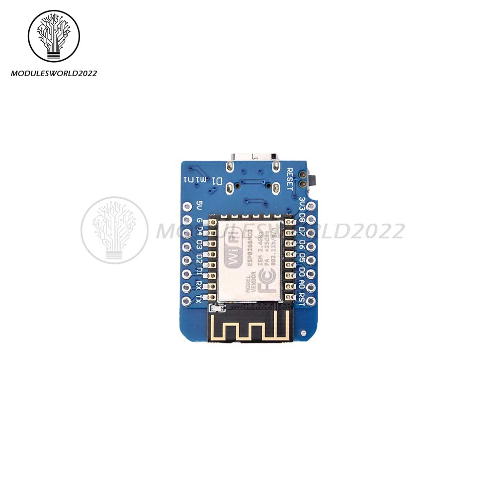 Store Categories Store Categories Other Product View Details Descriptions: This is D1 mini, it is a mini WIFI board based on ESP-8266EX. 11 digital input/output pins, all pins have interrupt/pwm/I2C/one-wire supported(except D0 ) 1 analog input(3.3V max input) How to get started in Arduino: Setup driver Before you use miniD1 boards, you need setup CH340g driver. Python On Windows you need install Python 2.7.10. On Linux & MAC OSX, you don't need install it, comes preinstalled with OS. Installing Hardware package There is two ways to install hardware package, Boards Manager or GIT Installing with Boards Manager Starting with 1.6.4, Arduino allows installation of third-party platform packages using Boards Manager. We have packages available for Windows, Mac OS, and Linux (32 and 64 bit). <1>. Install Arduino 1.6.7 from the Arduino website. <2>. Start Arduino and open Preferences window. <3>.Enter http://arduino.esp8266.com/stable/package_esp8266com_index.json into Additional Boards Manager URLs field. You can add multiple URLs, separating them with commas. <4>. Open Tools→Board:xxx→Boards Manager and install esp8266 by ESP8266 Community (and don't forget to select your ESP8266 board from Tools > Board menu after installation). Installing with GIT (Recommend): We recommend using GIT to install Hardware package, you can always get the latest version of it. Packge Included : 5Pieces ESP8266 ESP-12 ESP12 WeMos D1 Mini WIFI Dev Kit Development Board NodeMCU Lua Shipping Policy Payment Method Returns Policy Shipping Policy Payment Method Returns Policy Home Payment Shipping About us Contact us Copyright©2018 datacaciques Home Payment Shipping About us Contact us Store Categories Store Categories Other Product View Details Descriptions: This is D1 mini, it is a mini WIFI board based on ESP-8266EX. 11 digital input/output pins, all pins have interrupt/pwm/I2C/one-wire supported(except D0 ) 1 analog input(3.3V max input) How to get started in Arduino: Setup driver Before you use miniD1 boards, you need setup CH340g driver. Python On Windows you need install Python 2.7.10. On Linux & MAC OSX, you don't need install it, comes preinstalled with OS. Installing Hardware package There is two ways to install hardware package, Boards Manager or GIT Installing with Boards Manager Starting with 1.6.4, Arduino allows installation of third-party platform packages using Boards Manager. We have packages available for Windows, Mac OS, and Linux (32 and 64 bit). <1>. Install Arduino 1.6.7 from the Arduino website. <2>. Start Arduino and open Preferences window. <3>.Enter http://arduino.esp8266.com/stable/package_esp8266com_index.json into Additional Boards Manager URLs field. You can add multiple URLs, separating them with commas. <4>. Open Tools→Board:xxx→Boards Manager and install esp8266 by ESP8266 Community (and don't forget to select your ESP8266 board from Tools > Board menu after installation). Installing with GIT (Recommend): We recommend using GIT to install Hardware package, you can always get the latest version of it. Packge Included : 5Pieces ESP8266 ESP-12 ESP12 WeMos D1 Mini WIFI Dev Kit Development Board NodeMCU Lua Shipping Policy Payment Method Returns Policy Shipping Policy We will arrange shipping for you within 24 Hours after payment cleared except the holidays. -We ship items to Worldwide. Thank you! -we will ship out the order in 1-2 business days after payment cleared .Since it is international shipping ,delivery time is about 15--28 business days to arrive to most countries. Payment Method We accept PayPal payment ONLY, and must be received within 5 days from the date of purchase. 2. It is easy and safe for you to pay by credit cards, debit cards, bank transfers and PayPal account balances. 3.Buyers are responsible for import duties,custom fees and taxes, if any, please check your country. Returns Policy 1.We believe our items are so outstanding. We are convinced you will be happy with your Purchase. 2. If you do not satisfy with our items. Please simply return to us within 30 Days in original condition. Just pay for the returned postage. Then we can issue full refund or resend the item to you after the returned item arrived at our warehouse. 3. Please include your eBay ID and item number with any email requests.