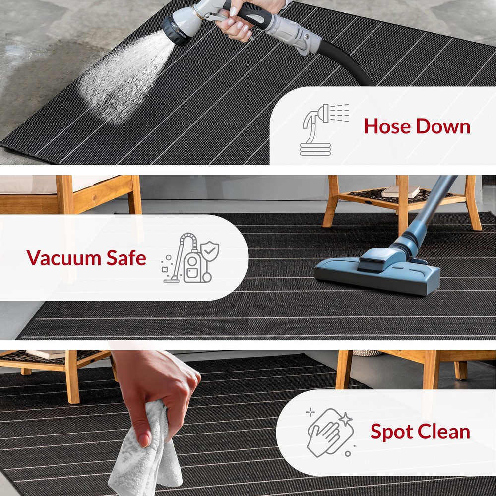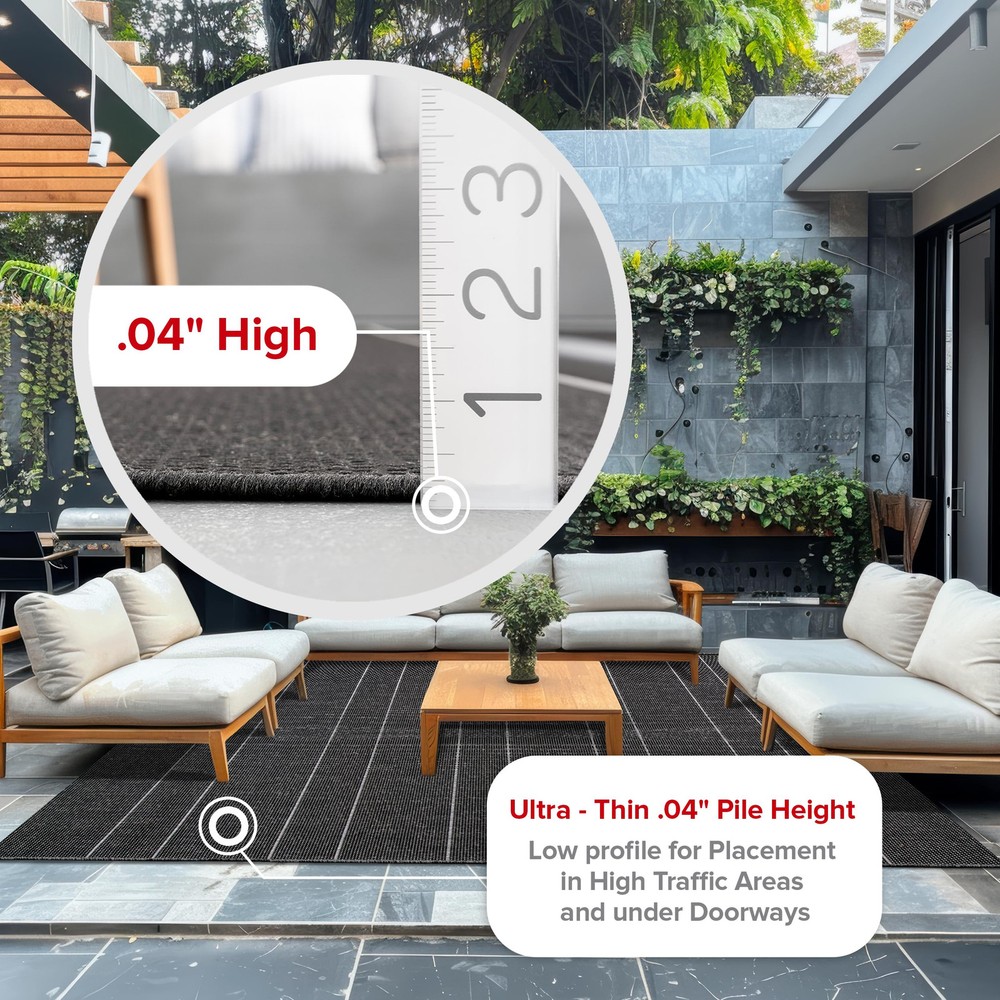 Whoever said beautiful floor accents are only for inside the home hasn’t yet met an indoor/outdoor rug. Each unit is designed to stand up to the elements while adding a touch of charm to your surroundings. These pieces are so versatile that you might find yourself using them around your home (don’t worry, they’re just as great for indoor use too!) Indoor/Outdoor Durable Materials: Our area rug is meticulously crafted from 100% Polypropylene and made in Belgium, ensuring exceptional quality. With this rug’s power-loomed construction, you can trust in its durability. Recommended Rooms: Transform your living room, kitchen, patio, deck, or porch with this stunning 5x8 indoor/outdoor Area Rug. This rug will turn any space into a personal oasis creating a soothing atmosphere in your living room or patio. Stylish & Versatile Design: This Striped Indoor/Outdoor rug boasts a captivating aesthetic. Its Striped pattern and unique prints bring a touch of flair to any room, ensuring lasting style in your living room, patio, or deck. Premium Quality and UV Resistant Rug: Our area rug ensures durability and long-lasting beauty when placed in any high traffic areas. This area rug is UV-resistant, durable and perfect for indoor or outdoor use. Sleek and Functional Pile Height: This Low pile of this area rug strikes a perfect balance between style and practicality. Our rug adds a sleek and sophisticated touch to your decor while remaining easy to clean and maintain. Versatile & Functional: This indoor/outdoor area rug measures 5x8 feet, making this rug the ideal choice for various room sizes. This rug makes the perfect centerpiece for your living room, patio, deck, or any room that could be elevated. Kid and Pet-Friendly Rug: Worried about spills or messes? With this synthetic fiber design, this area rug is engineered to withstand the demands of a busy household from to pets, giving you peace of mind letting you relax and enjoy your new rug. Weather and Stain-Resistant: Keep your indoor/outdoor rug looking pristine effortlessly. Its stain-resistant properties make cleaning your area rug a breeze, allowing you to maintain its beauty. This area rug is a great choice for outdoor spaces! Outdoor Rug Care Instructions: Easy to care for, simply shake out your outdoor rug to remove any light dirt or debris and spray your area rug with a hose for stubborn stains. This is the perfect patio rug or front porch rug to elevate your home. Enhance with a Rug Pad: Use an indoor/outdoor rug pad to prevent slipping and extend the life of your rug. It provides a powerful nonskid treated layer, aiding in protection while adding a layer of comfort.