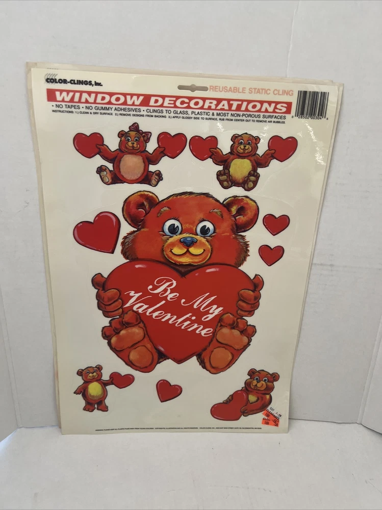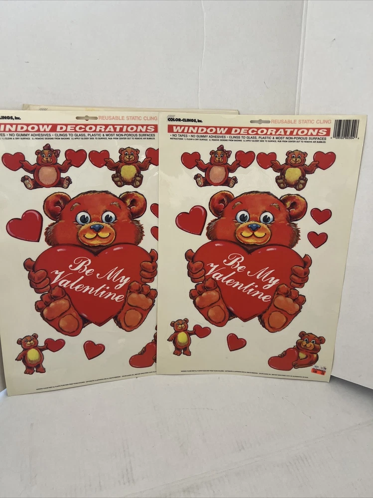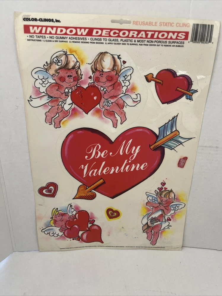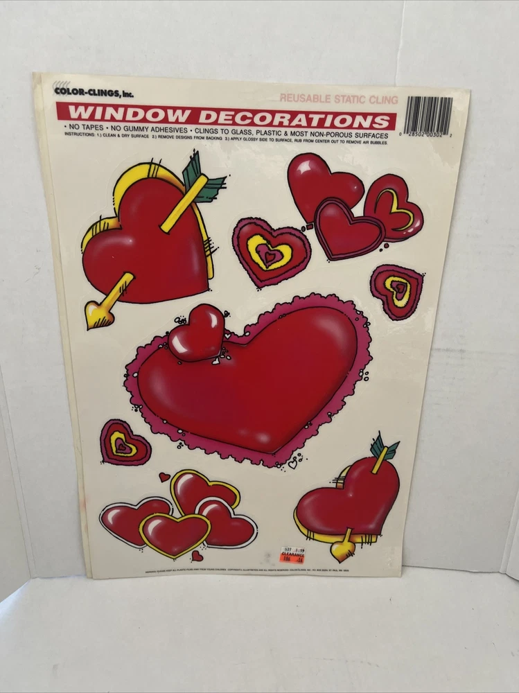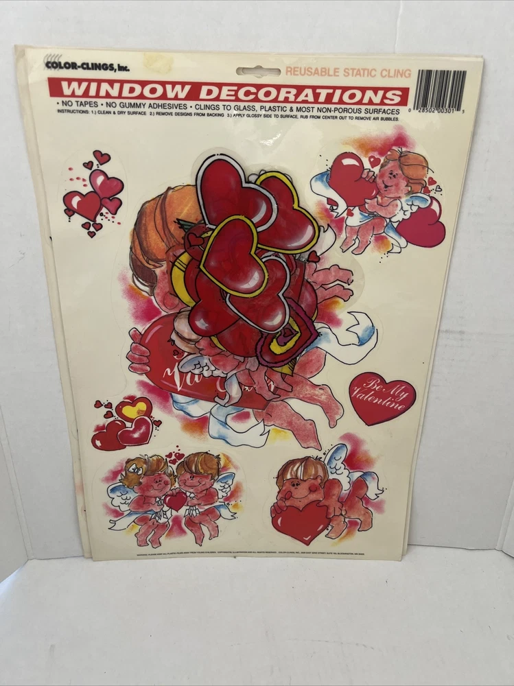 6 LargeVintage Color Clings Static Window Valentine- One Small Harvest
