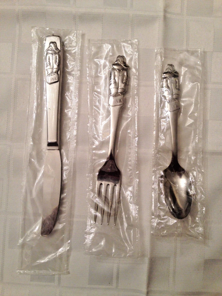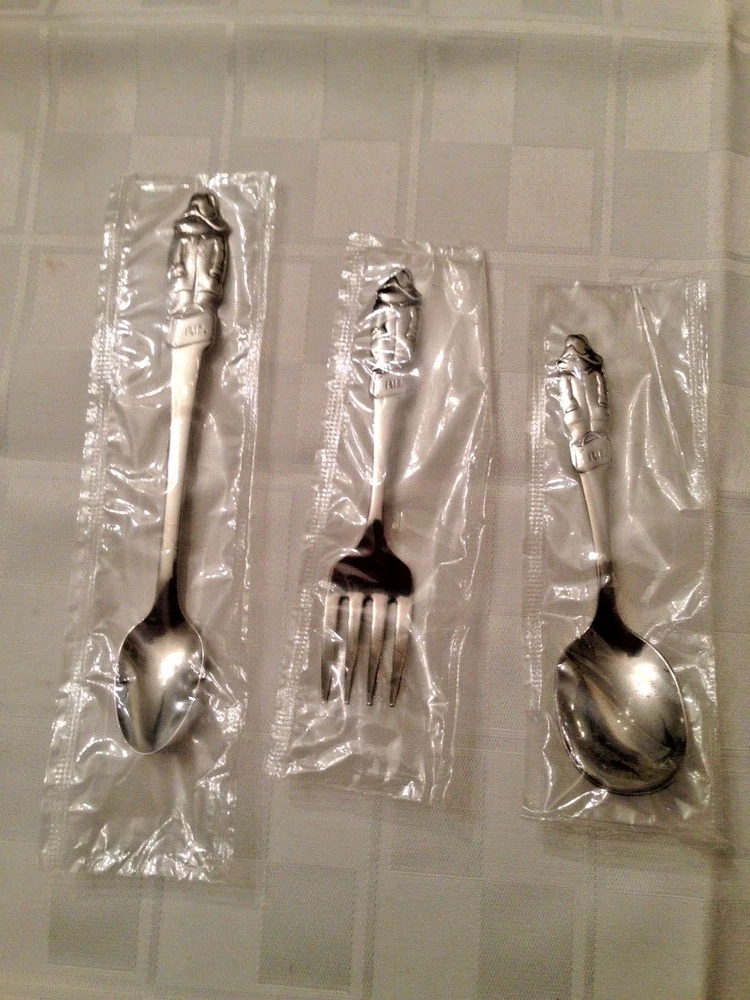 Vintage 6 piece Oneida Stainless Youth/ Infant/ Toddler Silverware/ Flatware Set. The Pattern: PADDINGTON BEAR. Includes:1 Youth Knife: 6 3/4" long, 1 Youth Fork: 5 3/4" long, 1 Youth Spoon: 5 14" long, 1 Infant Feeding Spoon: 5 1/2" long, 1 Toddler Fork: 4 5/16" long, 1 Toddler Spoon: 4 3/8" long. This Set is Brand New and still enclosed in the original cellophane packages. I do not ship outside of the USA. Thanks for looking. Payment is due within 3 days of auction close Please contact me with any questions I mail the day after I receive payment unless it is the weekend or a holiday. I ONLY MAIL IN THE UNITED STATES I ONLY ACCEPT PAYPAL - BE SURE YOUR ADDRESS IS CORRECT ****** ALL SALES ARE FINAL