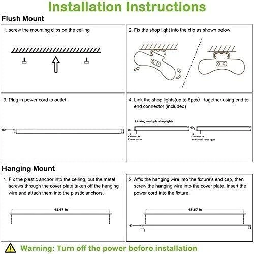6 Pack 4FT LED Shop Light, Utility Shop Light, 4400lm, 42W, 5000K Daylight Shop Color White Material Plastic Style Modern Light fixture form Ceiling Room Type Garage, Basement Product Dimensions 8.5"L x 3.4"W x 46.2"H Specific Uses For Product Shop Indoor/Outdoor Usage Indoor Power Source Corded Electric Installation Type hanging and ceiling-mounted Special Feature Energy Efficient Control Method App Light Source Type LED Number of Light Sources 1 Voltage 100277 Volts Light Color White Shape rectangular prism Included Components power cord with on/off switch Warranty Type Limited Warranty Lighting Method LED Specification Met ETL Number of Items 6 Wattage 42 watts Bulb Base GU10 Switch Type Push Button Brightness 4400 lumen Efficiency High Mounting Type Ceiling Mount Fixture Type Non Removable Assembly Required No Manufacturer hykolity Model Name Shop Light Part Number SHOP Item Weight 5.89 pounds ✅ Super Bright - : 4FT led shop lights feature 4400 lumens brightness at 5000K Daylight White by using only 42W. That is a staggering LED Efficiency of 105 lm/w! Excellent replacement of conventional fluorescent fixture. Energy Savings of up to 75% ✅ High Quality - ETL certified for better quality, safety and reliability. This long-lasting LED shop light provides up to 50,000 hours of light before any maintenance is required ✅ Linkable - 4ft linkable led shop light use plug connection to connect up to 6 pcs together in your garages, workshops, workbench areas, storage areas, warehouses, basements, equipment rooms, etc ✅ Easy Installation - Plug & Play. Come with 59" power cord with on/off switch and other small accessories. You can hanging it with the included hanging chains or directly mounted to the ceiling with the included mounting screws ✅ Our Warranty - All our's shop lights are confidently guaranteed for 1 years! We aim for quality followed up with quality customer service directly provided by manufacturer. Shipping We offer FREE shipping on all of our orders ! We ship within 1 to 2 business days of payment, usually Sooner. We use a selection of shipping services such as UPS, FedEx, USPS , Bluecare Express , Aquiline International etc. We only ship to the lower 48 states, Shipping Restrictions :- Shipping to Alaska, Hawaii, Puerto Rico, Guam, and other US territories may incur shipping charges or delivery restrictions. Please contact us before ordering, or your order can be refunded/cancelled. NO APO/FPO Addresses or No PO Boxes allowed. State Restrictions :- There may be restrictions based on your state of purchase. For example, certain items may not be shipped to California due to state regulations. Local pickups and combined shipping options are not provided at this time. Return You can return a product for up to 30 days from the date you purchased it. Any product you return must be in the same condition you received it and in the original packaging. Please keep the receipt. Payment We accept payment by any of the following methods: Please pay as soon as possible after winning an auction, as that will allow us to post your item to you sooner! We accept all major credit cards, PayPal, and Apple Pay for your convenience. Your payment information is secure and encrypted to ensure a safe and seamless transaction. Please complete your payment within 3 days of purchase to avoid any delays in shipping. Feedback Customer satisfaction is very important to us. If you have any problem with your order, please contact us and we will do our best to make you satisfied. We are 24/7 avaliable ,We are happy to assist you , If you have any concerns or issues with your order, please contact us before leaving negative feedback. We are committed to resolving any problems and ensuring your satisfaction. Contact Us If you have any questions or concerns, please feel free to reach out to our customer support team. You can contact us through the eBay messaging system. We are available Monday to Friday, 9:00 am to 5:00 pm EST, and we will do our best to respond to your inquiry within 24 hours. Please visit our eBay store to check out other items for discount ,Offers and sale! Thank you for supporting our small family business!