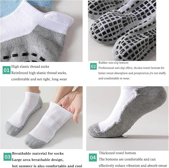 6 Pairs Grip Socks Pilates Yoga Socks Non Slip Low Cut Ankle Socks Sports New Fabric type: Cotton Blend Care instructions: Machine Wash Origin: Imported Pattern: Solid GRIP THAT STAYS: Low cut ankle socks feature silicone grips on the bottom to keep them securely in place during activity and prevent slips. COMFORT MEETS SUPPORT: Breathable cotton blend construction wicks away moisture while lightweight padding in the heel and toe areas add cushioning. PERFECT FOR MULTIPLE SPORTS: Versatile socks can be worn for pilates, yoga, running, training, gym workouts, or casual wear for added comfort. KEEP THEIR SHAPE: Reinforced heel and toe prevent sagging and maintain the socks' shape wash after wash. MULTIPACK FOR ALL YOUR NEEDS: Convenient 6 pair pack ensures you'll have fresh socks on hand for daily workouts or changes throughout the week. Return Policy: We offer a 30 day return policy from the receiving date. Please contact us for a Free Return Label. Please use our return label so it will go back to our supplier and we can do a refund or replacement afterwards. Feedback: Your satisfaction is very important to us! If you have any problem with your order, please contact us and we will do our very best to make you satisfied. As long as you are happy with your purchase, please leave a positive feedback for us. We will always leave you a positive feedback in return. If you have any problem with your purchase, please do not leave a negative feedback. Please Contact us ... and your issue will be solved quickly and positively We are a small family-owned business trying to make a living, not a huge company that does not care ... We will ALWAYS do our best for you!