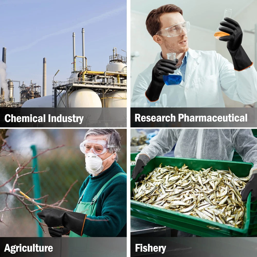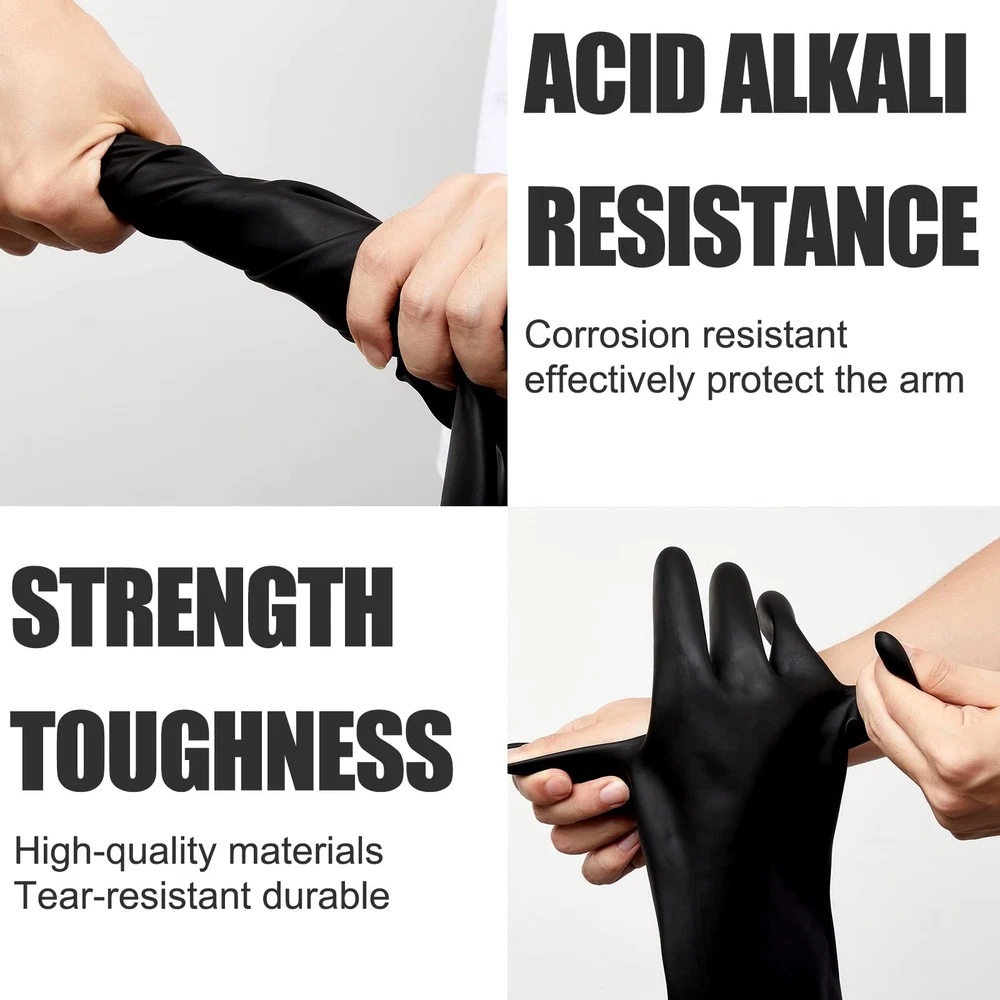 Features: Easy to clean: These reusable cleaning gloves are smooth on surface, which are easy for you to clean, just rinse with water, then air dry for next use, simple and convenient. Wide uses: The thick rubber gloves are suitable for washing dishes, pool cleaning, furniture renovation, yard working, car washing, home cleaning, and so on. They are also nice and practical gifts for family members, colleagues, friends and neighbors. Specifications: Material: latex Color: black Size: 14 x 4.5 inches Package includes: 6 Pairs of heavy duty latex gloves Notes: Manual measurement, please allow slight errors on size. The color may exist slight difference due to different screen displays. Ample Quantity: the package includes 6 pairs of resistant gloves, which are resistant to acid, oil and alkali, keeping your hands from injuries and keeping hands dry and clean; Sufficient quantity is enough to satisfy your daily use and needs Proper Size: these reusable rubber gloves are measured about 14 x 4.5 inches, a suitable size to fit most hands, adopting with rolled edge design, so that the gloves can be fixed in place and not easy to slide, providing much convenience for you when working Reliable Quality: these heavy duty cleaning gloves are made of quality latex material, which is resistance and tear resistance, waterproof and reusable, elastic and tough, skin friendly and easy to put on and take off, and there will be no discomfort after wearing gloves for a long time Practical Functions: these heavy duty dishwashing gloves feature with nice acid base barrier properties to protect your hands and forearms from dangerous liquids or other items, ideal thickness for good safety protection, and smooth surface offering you comfortable tactile and flexible grip Wide Applications: these rubber gloves heavy duty can be applied for car washing, home cleaning, machinery maintenance, yard work, gardening, agriculture, industry, construction, etc., bringing you a wonderful wearing and using experience