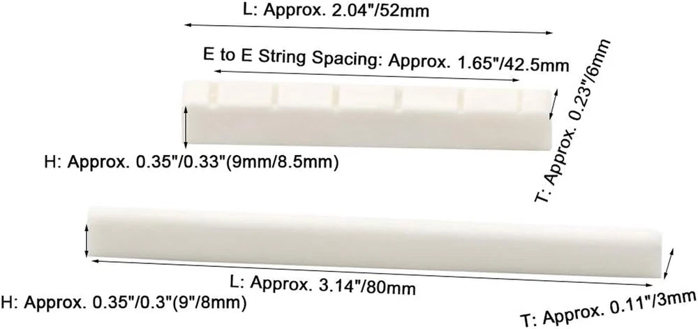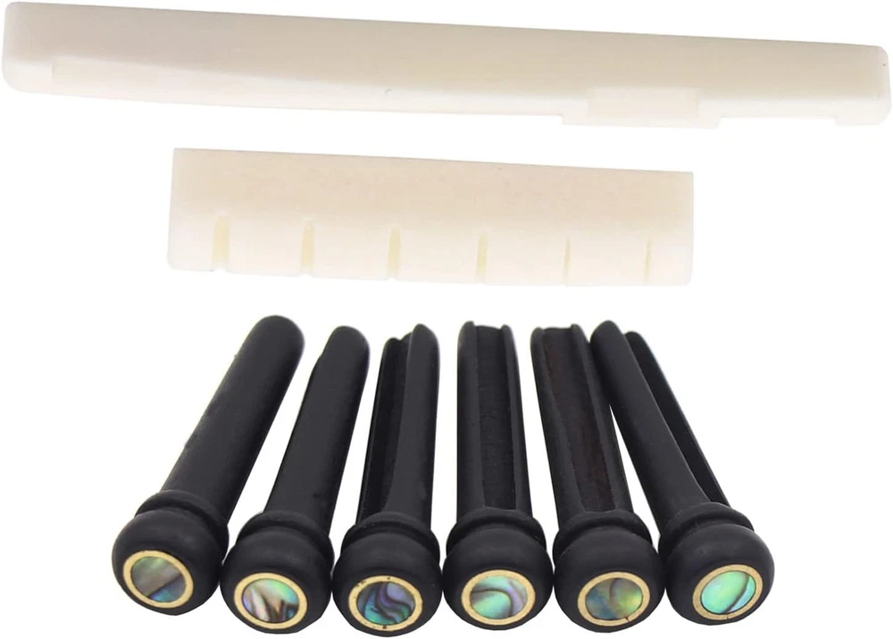 Store New Arrivals Add to Favorite View Feedback Contact 6 String Classical Guitar Bone Bridge Saddle and Nut,6 Pcs Ebony Guitar Bridge Pins Guitar Parts Accessories Set Description Item Weight 0.317 ounces Color Name Ebony Set Color Ebony Set Package Dimensions 3.07 x 1.65 x 0.47 inches Enhance Your Guitar's Sound Quality: Our guitar bone bridge nuts and saddles are made from high-density real cattle bone, which provides a hard texture and crisp sound. With a long service life, you can enjoy improved sound quality for years to come. Premium Quality Materials: Our guitar pins are made from ebony with abalone dot and brass circle on the head, while the bridge pins are sturdy for long service life. These materials effectively extend the guitar sustain, improve the volume attenuation, and increase the guitar's sound quality. Lightweight and Easy to Install: Our product is pre-slotted to make for a quick and easy install. You won't have to worry about any complicated installation processes or heavy parts. Complete Package: Our package includes 1 x Classical guitar bone nut, 1 x Classical guitar bone saddle, and 6 x Ebony wood guitar bridge pins. You'll have everything you need to upgrade your guitar's sound quality in one convenient package. Note: Please measure your guitar size before purchase, as our ebony guitar bridge pins and bone saddle nuts may not be suitable for all guitars. Additionally, it may need to be polished to match the guitar perfectly. 1 Set of 6 String Classical Guitar Nut and Saddle + 6pcs Ebony Guitar Bridge Pins Features: 100% brand new, high quality and test fine.Do not need to worry about quality,we have checked it carefully before shipping. These Guitar pins are made of ebony with abalone dot on the head, the bridge pins are sturdy for long service life. Lightweight design, exquisite appearance, our bone guitar saddle nut has precutted string slots which requires very little experience to installand easy to use. Many luthiers and guitar manufacturers prefer bone guitar nuts for their instruments.White bone is the traditional choice for making nuts and saddles on quality instruments and it is by far the most popular. Specification: Material: Cattle Bone + Ebony Package Include: 1 x Classical Guitar Bone Saddle 1 x Classical Guitar Bone Nut 6 x Ebony Guitar Bridge Pins Note: Please measure the dimension of your guitar nut carefully before your order it. Please note you may need to sand or deepen the slots, and polish the nut when you install it. Our guitar bone nut saddle and bridge can easily be removed with fine grit sandpaper, to achieve a perfect fit for your guitar. ABOUT US We offer the best prices around on high quality products. Our E-store includes media such as books, movies, music and games while offering electronics, toys, sporting apparel, clothing, tools, general home, garden items and more. SHIPPING We are always working hard to ensure your package arrives as soon as possible. Please understand that some factors like weather, high postal traffic, and the performance of shipping companies are outside of our control. We offer free shipping to the lower 48 states and ship within 2 business days of payment, usually sooner. We do not accept P.O. Boxes. Please provide a physical address. For shipping outside of the continental USA, we only use eBay's Global Shipping Program.The item is shipped to KY and then sent to the rest of the world. International customers are responsible for all duties and taxes. Continue to check out in order to calculate costs for shipping the item to your country. Messages regarding eBay's Global Shipping Program MUST be directed at eBay EXCLUSIVELY. RETURNS We offer a 30-Day Return Policy on items which you are not completely satisfied with. You have the option for a full-refund or an exchange of the item. No returns are available on items shipped outside of the USA. PAYMENT We accept PayPal. CONTACT US This page content is yet to come Please ad us to your favorite seller and visit again later Thank You CUSTOMER SATISFACTION We try our very best to make sure every customer is completely satisfied. If there's a problem, message us! We're happy to help. WE ACCEPT Copyright © 2021 AutoDS. | All Rights Reserved