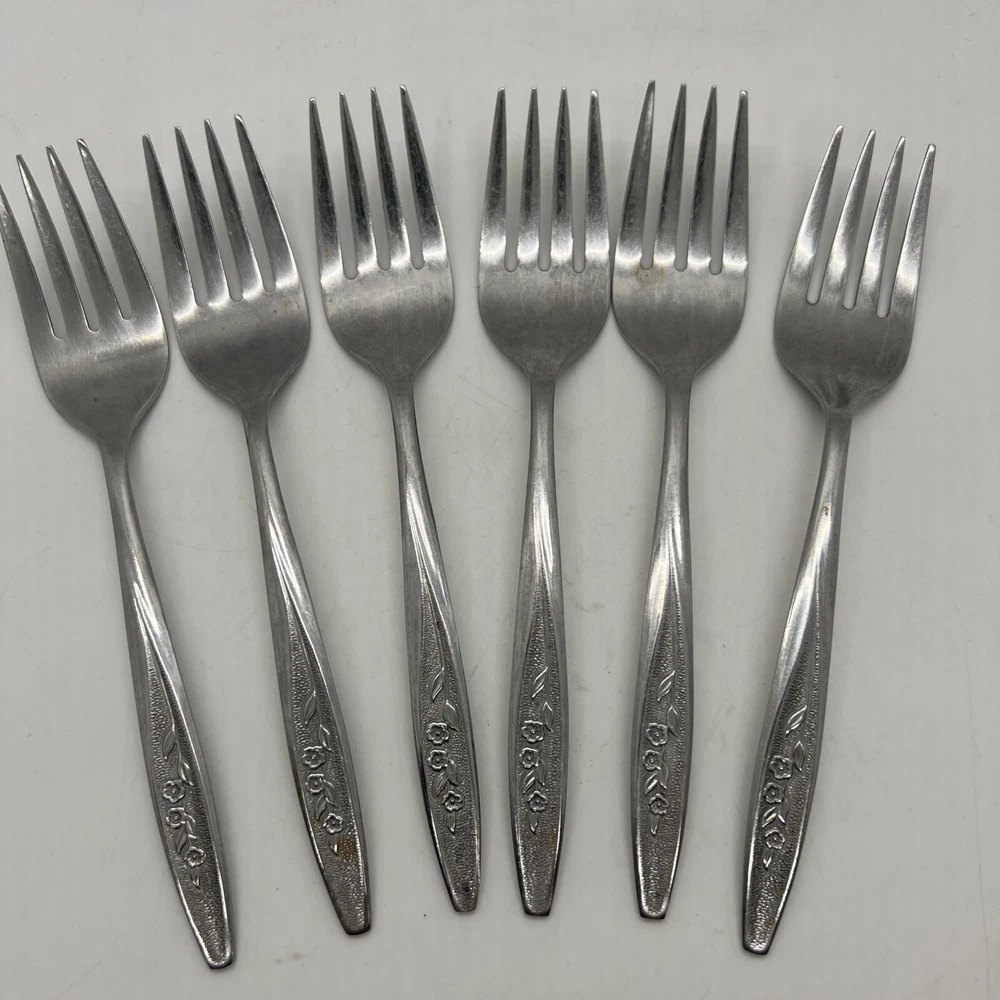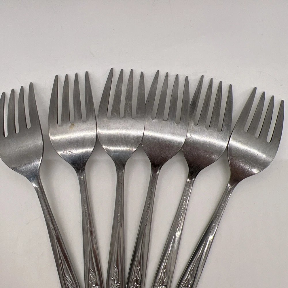 Home6 Superior RADIANT ROSE Salad Forks Flatware TAIWAN Stainless VTG Free 1 Spoon