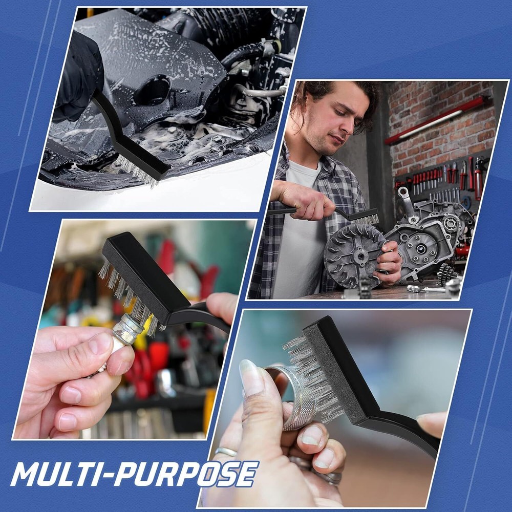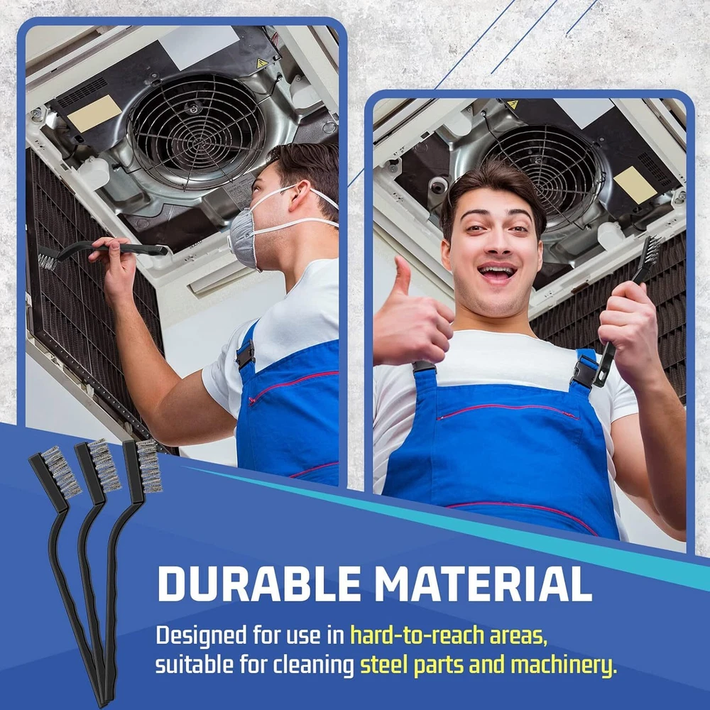 Enough to Share with Others: the package will bring you 60 pieces of wire brushes for cleaning, mainly in black, very useful in your daily life; The sufficient quantity can meet your needs for various situations, and you can also share them with your family or surrounding friends Dependable to Serve You: mainly made of stainless steel, the small wire brush is hard and solid, reliable in quality, not easy to deform, wear, or break; Moreover, its handle is made of plastic, hard and firm enough to use, smooth for you to touch Extensively Assorted Usages: the metal brush for cleaning can help you clean lots of stains, such as oil stains, welding slag, corrosion, and more; You can also use it to clean your windows, doors, floor tiles, in your home, office and more Proper Length for Applying: each metal wire brush measures approx. 6.7 inches in total length, its handle is approx. 13 cm/ 5.12 inches, long enough for you to hold and grasp, small and compact, easy for you to carry around and store Functional and Practical Design: the stainless steel wire brush has a curved handle, which can fit your hand well, and will not fall off easily, comfortable for you to touch and hold, and can bring you lots of convenience Features: Easy to hang: The steel brush for cleaning is designed with a small hole on the end, convenient for you to hang on the wall, which will make your room and house look cleaner and more organized. A novel present: You can send the steel wire brush to your parents, loved ones, neighbors, colleagues, friends, and more, showing your care and love for them in this simple way. Specifications: Material: stainless steel Main color: black Size: approx. 6.7 inches in length Package includes: 60 x Mini stainless steel brushes Notes: Manual measurement, please allow slight errors on size. The color may exist a slight difference due to different screen displays. Pointed items included, please use with care.