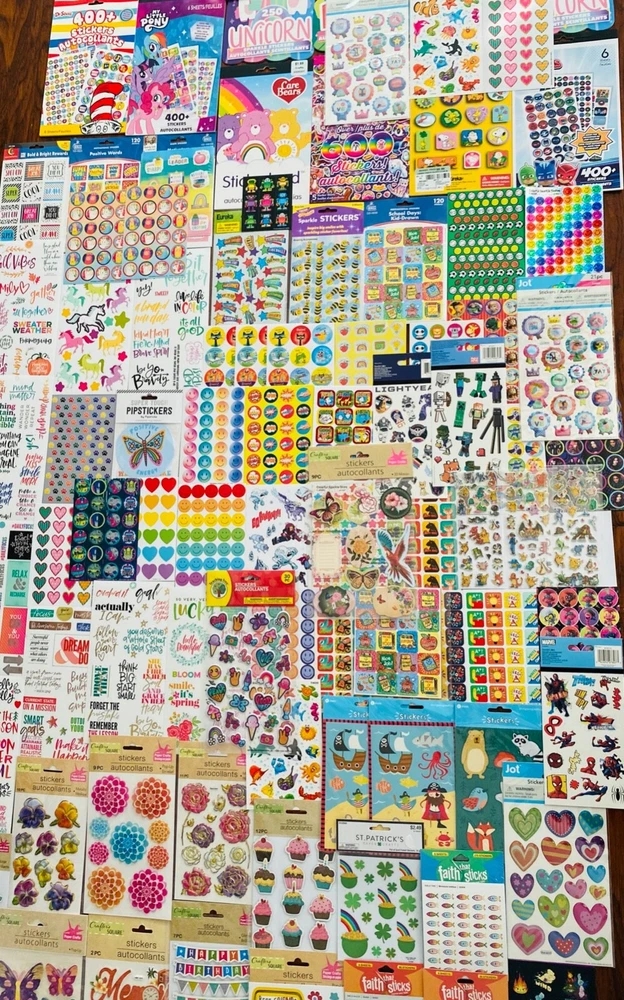 HUGE Mixed Sticker Lot | The Ultimate Kit | Qty. 600+ Stickers | High Quality Only! Fun Assortment of Puffy, Scrapbook, Cartoons, Bubble, Pop Up Stickers Packs For Everyone! You will receive 32+ Sticker Sheets of beautiful colorful assortment. The Pack will include 600+ Stickers overall! I have included a large variety of pictures of the assortment available. The pictures give you an idea of what you will be receiving. Please Note: You will not receive everything pictured. Please contact me with any special requests. This HUGE Variety of fun designs stickers can be used in parties, classroom, school and home, good for reward for students, potty training, adding inside a birthday card, game activities, entertaining toddlers, etc. Perfect Gifts for Kids & all Occasions: Can be given as a gift for kids, girls, boys, toddlers, teens, students, friends, and classmates, they will love it!