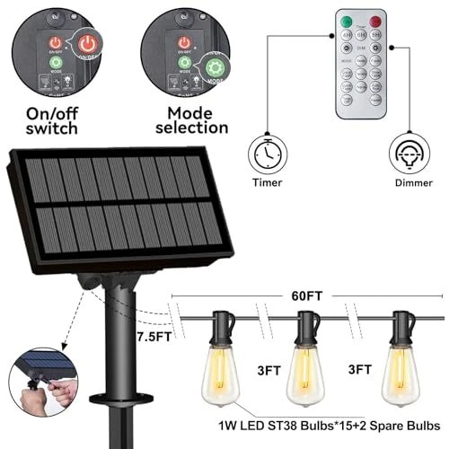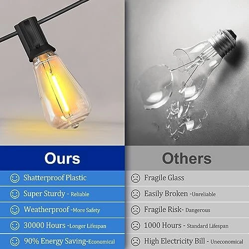 Return Policy Fast Delivery Trusted seller 60FT Solar String Lights Outdoor Weatherproof with Remote, Solar Powered LED Edison Bulb 15 Sockets Outdoor String Lights for Outside Patio Backyard Fence Halloween Christmas Decorations Product Description 【High Efficient Solar Panel】New solar panel with high-capacity battery can continuously supply power for total 24 hours+ with a full charge. Lights up automatically at night and cut off power after 7 hours or when sunrise. Light up your garden by Solar Energy every day. 【8 Lighting Modes + Remote + Very Bright】 Create a stunning look for your outdoor space by this solar powered string light. Then, enjoy the comfortable and relaxing atmosp by 8 lightning modes and remote control under the soft warm white light. 【Shatterproof & Weatherproof】 outdoor string light is weatherproof and with shatterproof LED plastic bulbs that allow you to use it for all 4 seasons through winter snow and summer storms. 【Widely Used】 outdoor decorative lights are the perfect decorations for Outside patio, backyard, fence, Halloween, Christmas wedding, birthday, balcony terrace, garden, bistro, pergola, gazebo, tent, barbecue, city roof, cafe, umbrella, party and so on. 【High Quality & Full Satisfaction】 solar products are compiled with CE, FCC, RoHS UL, ETL etc international standard requirement that ensure high quality and fully satisfaction of safety. So, we can proudly assure you that we support all product warranty. If the product stops working within 1-year, please contact us immediately and we will solve your problem within 24 hours. Shipping Returns Payment Shipping Shipping is FREE to all addresses other than APO/PO boxes in the lower 48 states. All our stock ships from US-based warehouses. Shipped via USPS or UPS (depending on location and package weight) Unless stated otherwise, all orders will ship within 24-72 hours of your payment being processed. Check our feedback to see the great reviews of FAST shipping we offer. Returns Seller does not accept returns Payment We currently accept payment via eBay managed payments only. Once payment is cleared, we will dispatch your shipment within 1-3 business days. Please refer to the "Shipping" tab for more information regarding shipping speed to your destination.