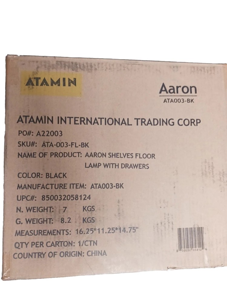 AARON SHELVES FLOOR 63" LED LAMPS WITH DRAWERS.COLOR BLACK.OPEN BOX LIke NEW.