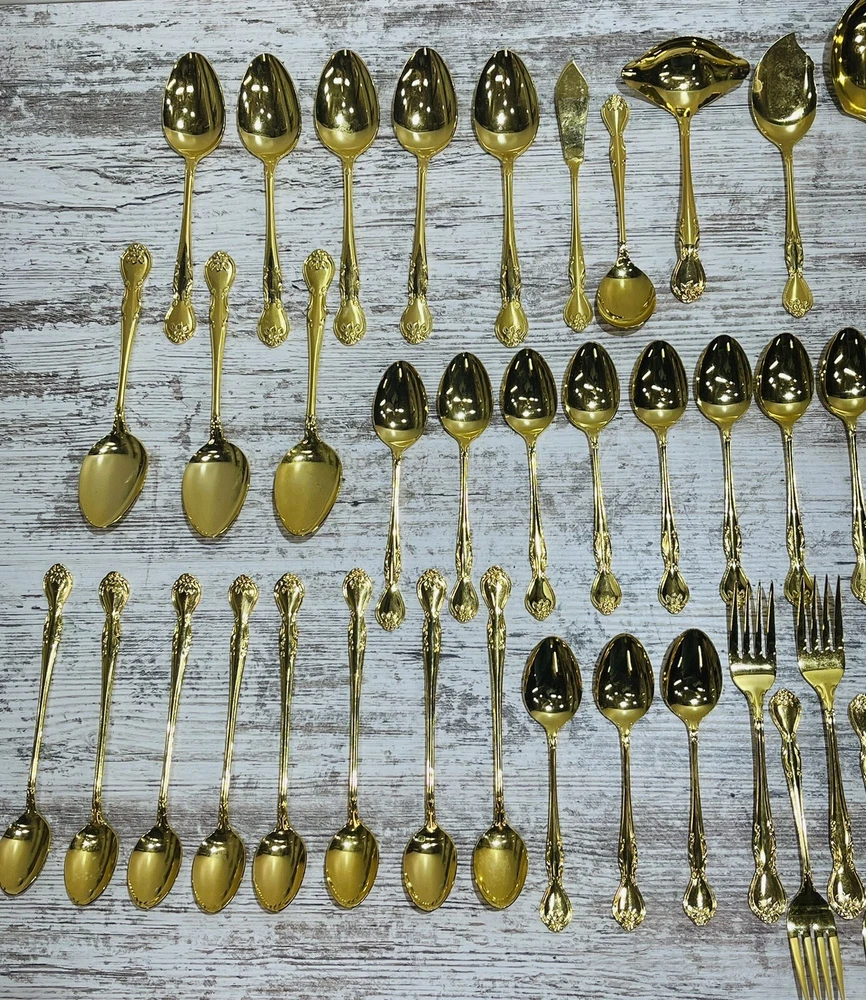 Thank you for looking at this very hard to find complete set of Norma NSCO flatware. There are 64 pieces in total with eight butter, knives, 1-large fork, 3-large different style spoons, 1-gravy, spoon 2-spreaders, 1-medium oval spoon, 16-6 inch spoons 8-7 inch spoons 8-slim 7 1/4 inch spoons 8-7 inch forks and 8-6 1/4 inch forks. If you have any questions, please feel free to send me a message and I will respond shortly.