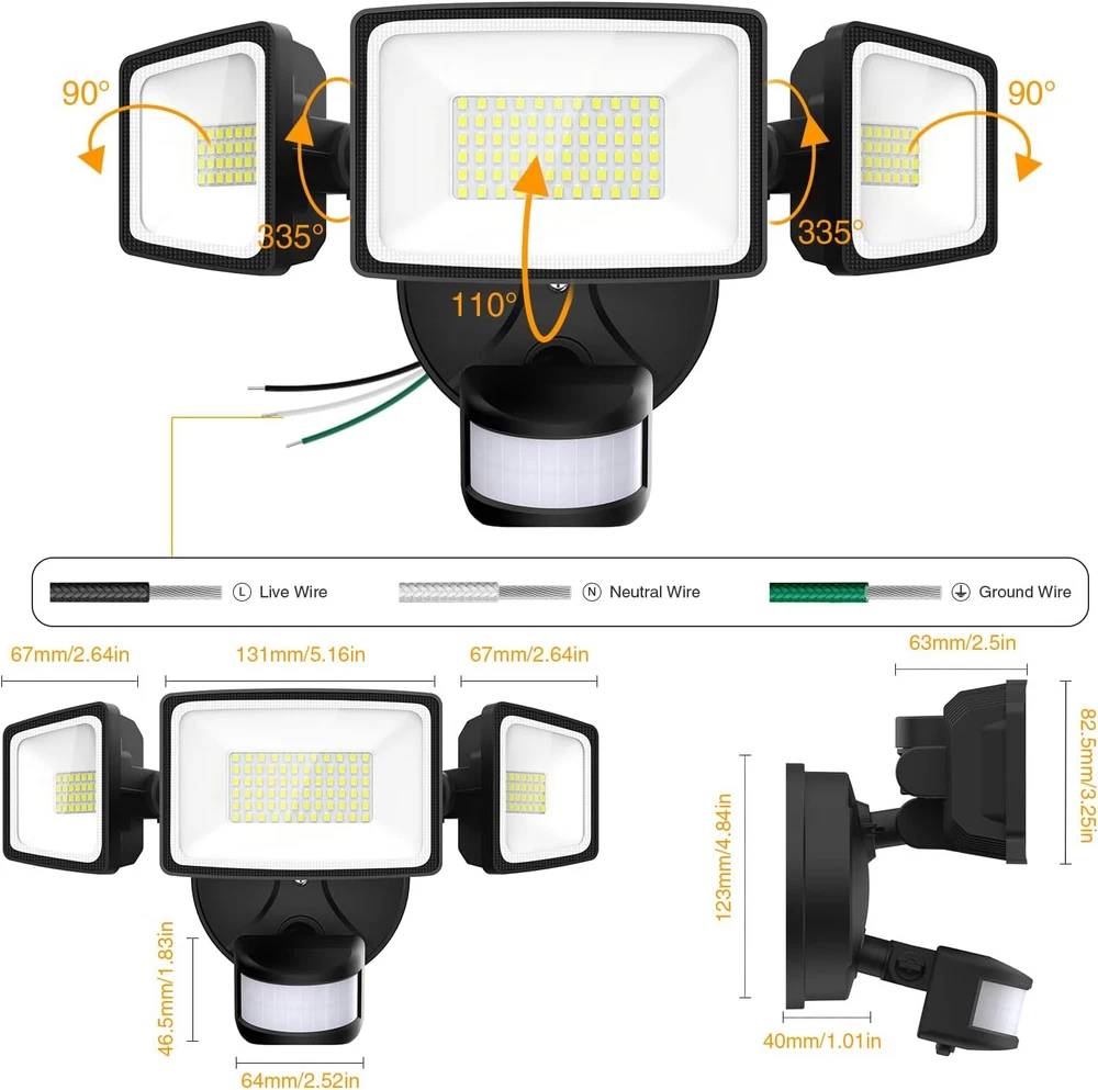 6500 LM Super Bright and Energy Saving: The 65 W outdoor flood light is illuminated by 112 high quality and efficient LED beads, producing up to 6500 LM high brightness output, equivalent to 450 W traditional normal bulbs, saving 85% of your electricity bill Adjustable Design and Easy Installation: The triple heads of this security light can be adjusted to cast light in a 270-degree detection zone, so you can see everything that’s happening in your yard; And just within 3 steps (refer to our installation tutorial video), you can start lighting your yards Efficient Cooling & Long Lifespan: The motion sensor lights outdoor is made of die-cast aluminum, it has excellent heat dissipation, which is more sturdy; More efficient fin type heat sink design and high-quality aluminum housing material, ensure this outdoor led floodlight safe to use and longer lifespan Enhanced Motion Sensor: With 180° wide sensing angle, this motion detector can sense motion up to max 72 feet away and the lighting time can be adjusted from 10 seconds to 7 minutes; If the sensing parameters are not suitable, please try to adjust the knob on the sensor first IP65 Waterproof: IP65 waterproof and dust-proof rating ensures that your outdoor security light fixture won’t be damaged in rain, sleet or snow weather; Perfect for garages, workshops, yards, storage rooms, driveways, parking lots, and more Product Description 1 Energy Saving 2 Reliable Design 3 Motion Detector Explore More Styles of LED Security Lights from Onforu Add to Cart Add to Cart Add to Cart Add to Cart Add to Cart Add to Cart Add to Cart Customer Reviews 4.5 out of 5 stars 11 4.6 out of 5 stars 38 4.3 out of 5 stars 23 4.2 out of 5 stars 22 4.1 out of 5 stars 10 4.2 out of 5 stars 54 4.2 out of 5 stars 54 Price $75.99 $ 75 . 99 $49.99 $ 49 . 99 $129.99 $ 129 . 99 $75.99 $ 75 . 99 $149.99 $ 149 . 99 $15.99 $ 15 . 99 $15.99 $ 15 . 99 Power Source Plug in Plug in Corded Electric Corded Electric Corded Electric Corded Electric Corded Electric Control Method Hand Control Hand Control Hand Control Hand Control Hand Control Hand Control Hand Control Brightness 9000LM 6500LM 9000LM 7500LM 6500LM / / Dimmable ✘ ✘ ✘ ✔ ✘ ✘ ✘ Dusk to Dawn ✔ ✔ ✘ ✔ ✘ ✔ ✔ With Motion Sensor ✔ ✔ ✔ ✔ ✔ ✔ ✔