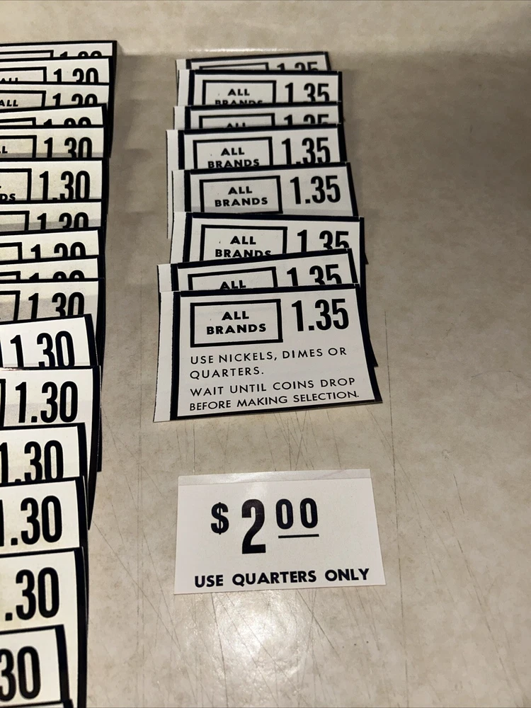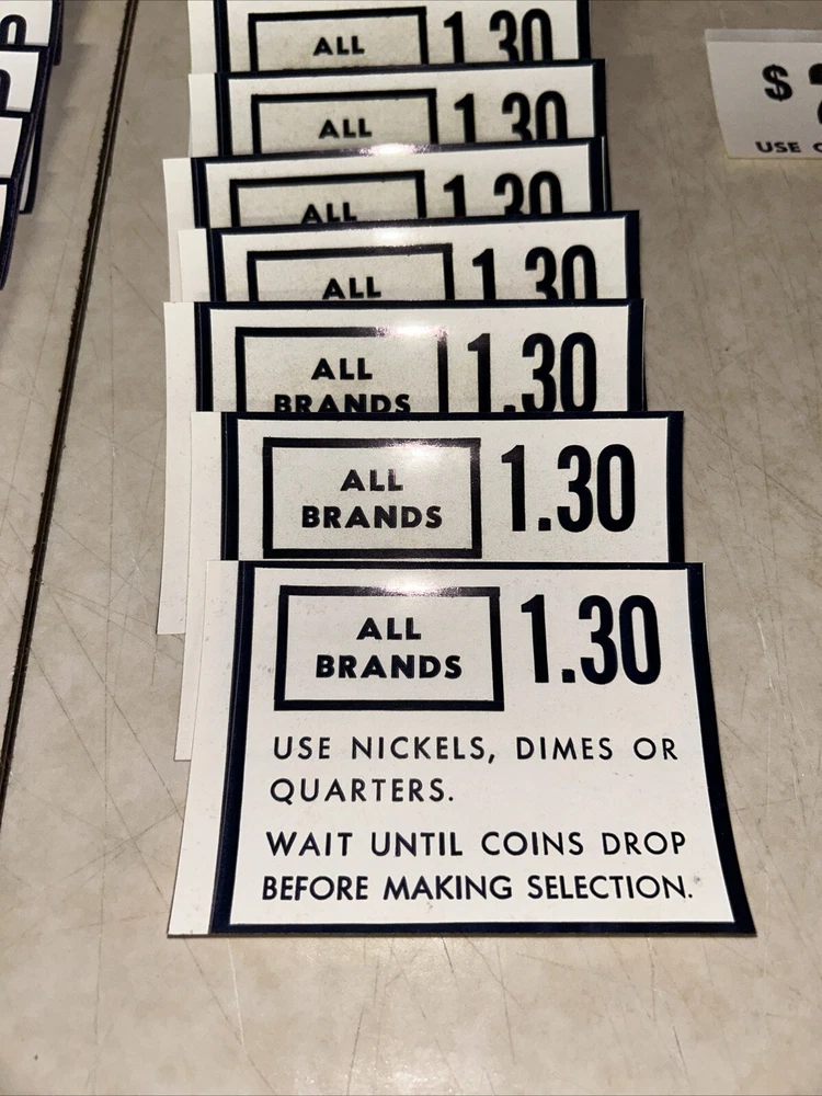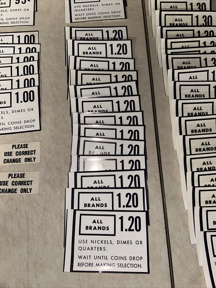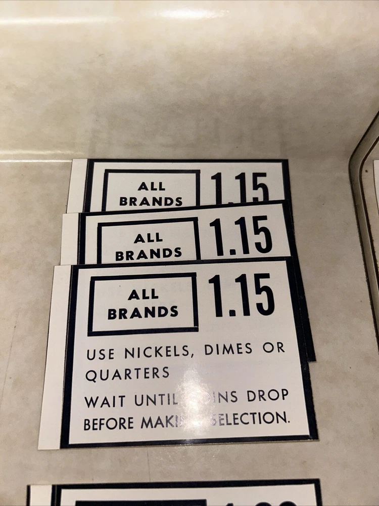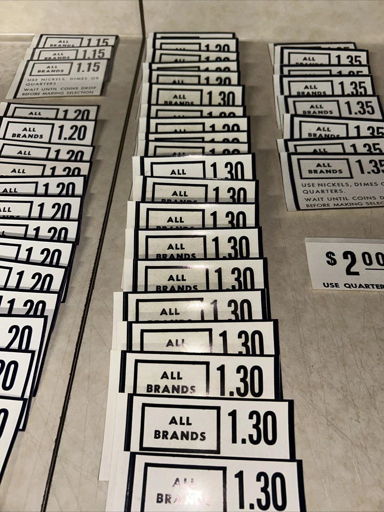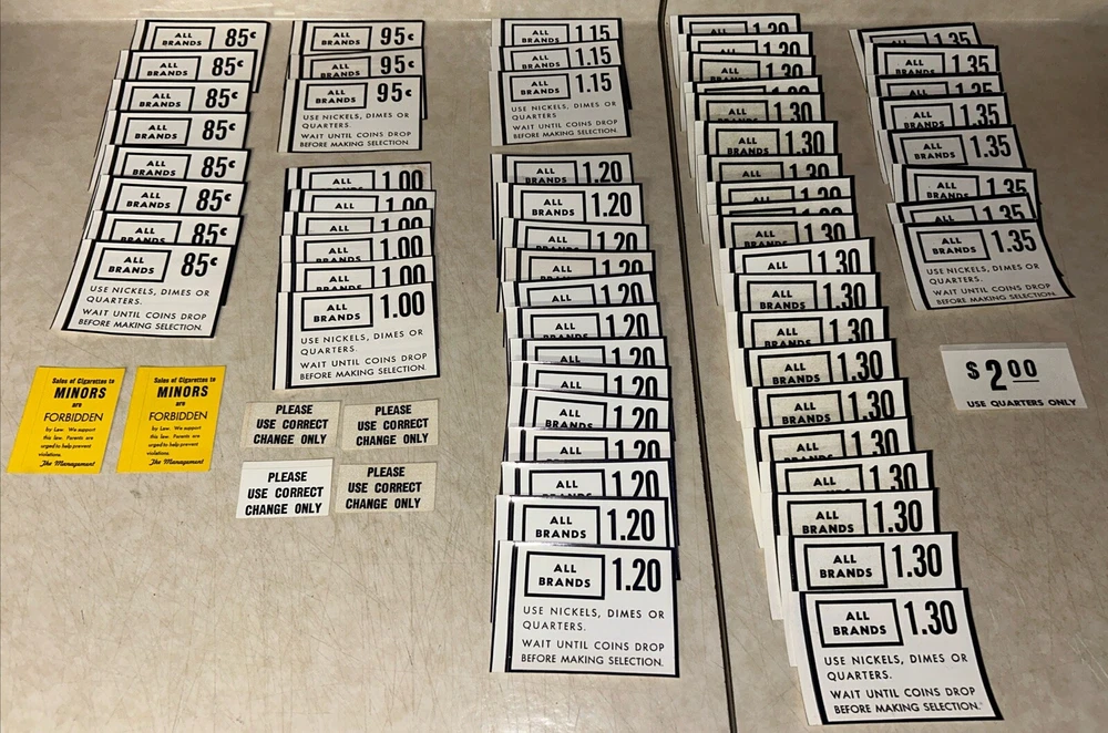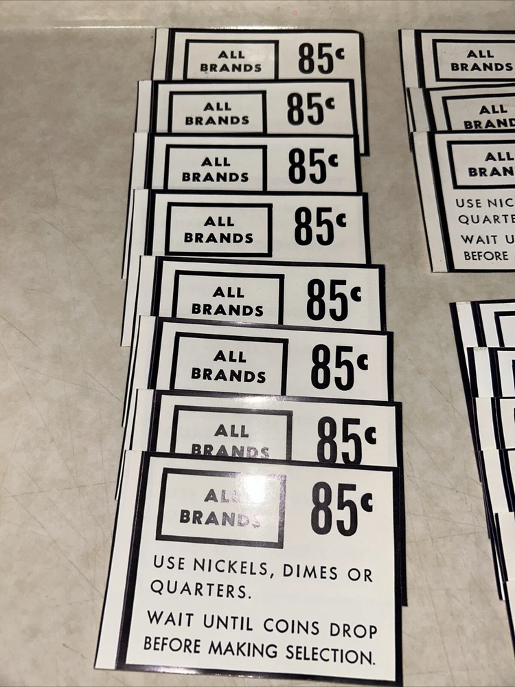 (68) RARE Vintage Cigarette Vending Machine Price Decals/Stickers - NEW