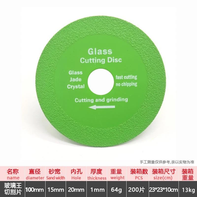 Product Description ❤100% Good Service ❤Fast Free Shipping ❤30 Days Return ❤❤100% High Quality❤ It can save you a lot of time and effort! The cutting speed is fast, and the cut is flat, and not easy to break. Main Features Fast, Precise Cuts The diamond cutting blade is high-temperature resistant for reduced vibration and straighter, faster cuts. It is sharp and does not collapse, one piece is multi-purpose, the slit is small, and it is resistant to cutting and wear. Scope Of Application For smooth cutting, chamfering, and grinding of glass, jade, crystal, wine bottles, ceramics, ceramic tiles, and other materials. Chip-free Cutting 1mm ultra-thin saw blade does not damage the surface of the object, the grinding force is uniform, and the smoothness is good. With low grinding noise and less dust, minimal debris, and a top-notch cut! Easy To Use Designed for use with the Model 100 angle grinder , it is easy to install and use and can withstand the demands of dry/wet cutting and long continuous cuts. Advanced Materials Using diamond high manganese steel matrix, new brazing process, upgraded and improved blade, more convenient, safer, and longer service life. Specifications Product Weight 75G Package Size 10 × 10 × 10cm / 3.9 × 3.9 × 3.9inches Package Contents Glass Cutting Disc × 1 Material Diamond high manganese steel matrix Color Green Package Include: 6 Pcs*Grinding Wheel Or 1 Kit*Red Kit(1*Mark Pen + 1*Ink) Note Due to manual measurements, please allow slight measurement deviations. Due to the different display and lighting effects, the actual color of the item may be slightly different from the color displayed on the picture. Payment Policy Shipping Policy Returns Policy Term of Sale About us 1. Paypal ONLY. 2. We ONLY ship to your PAYPAL verified address for more safely, so please make sure your shipping address is correct before you buy item. 3. Buyer need ship to other address (not Paypal confirmed address) should contact us before buy item. 1. Your order will be shipped within 3~5 work days once we receive your payment. 2. If you pay by e-check, we will ship your order once your payment is cleared. 3.We are not responsible for any customs duty incurred at foreign customs. 4.The shipping time is around 25-45 work days depending on your location.Please note this. We ship to Paypal confirmed address ONLY. Sellers are not responsible for service transit time. Transit times are provided by the carrier, exclude weekends and holidays, and may vary with package origin and destination, particularly during peak periods. Attention: Please contact us via ebay message like the way shown above before starting a returnrequest, so we can deal with your issue quickly and efficiently. 1.Return this item. 2. Select a reason: please choose"It's the wrong size or doesn't fit" 3. 30 days Warranty from the date of purchase covering manufacturing defects, but doesn't cover items that have seen abused, burned and damaged in any form.Please contact us if you have NOT received item beyond 5 working days, we will check it with post office and resend any missing item. 4. If you return an item purchased from us, it must be back in Factory Condition. This includes packaging, inserts, manuals etc. Please allow up to 5 Working Days for us to process your returned item.Thanks! Beijing time : Monday to Friday 9:00 am to 5:30 pm. Items can be returned for exchange or full refund within 5 days from the date you receive your merchandise if they are defective. We are not responsible for any purchase after this 5-day period. Return shipping is the responsibility of buyer unless the return is a result of our mistake (i.e., your receive the wrong item) We will pay for shipping replacement back to you if an exchange is requested. Negative feedback does not solve anything. If you have aproblem with your order please contact us first. We are always willing to work things out. -Please use the link "Ask the Seller Question" or send "eBay message" in you "My eBay" to contact us if you have problems, special requests or suggestions, we are very glad to help you anytime. Due to the 12 hours time difference between West and Asia we will reply you within 24 hour. --please leave us the positive feedback and good detailed seller rating after you received our package and satisfied with it. as you know, every seller works hard for the positive feedback. and if you have any question with the transaction or you do not satisfy with the item ,please fell free to contact with me before you leave any feedback ,i will responds you within 24 hours. --if you have any question,please fell free to contact with me first,I will response you within 24 hours ,We take the weekends off, so any questions sent then will be answered on Monday. Thanks for your patience and understanding! Please give me a chance before you leave the negative feedback.
