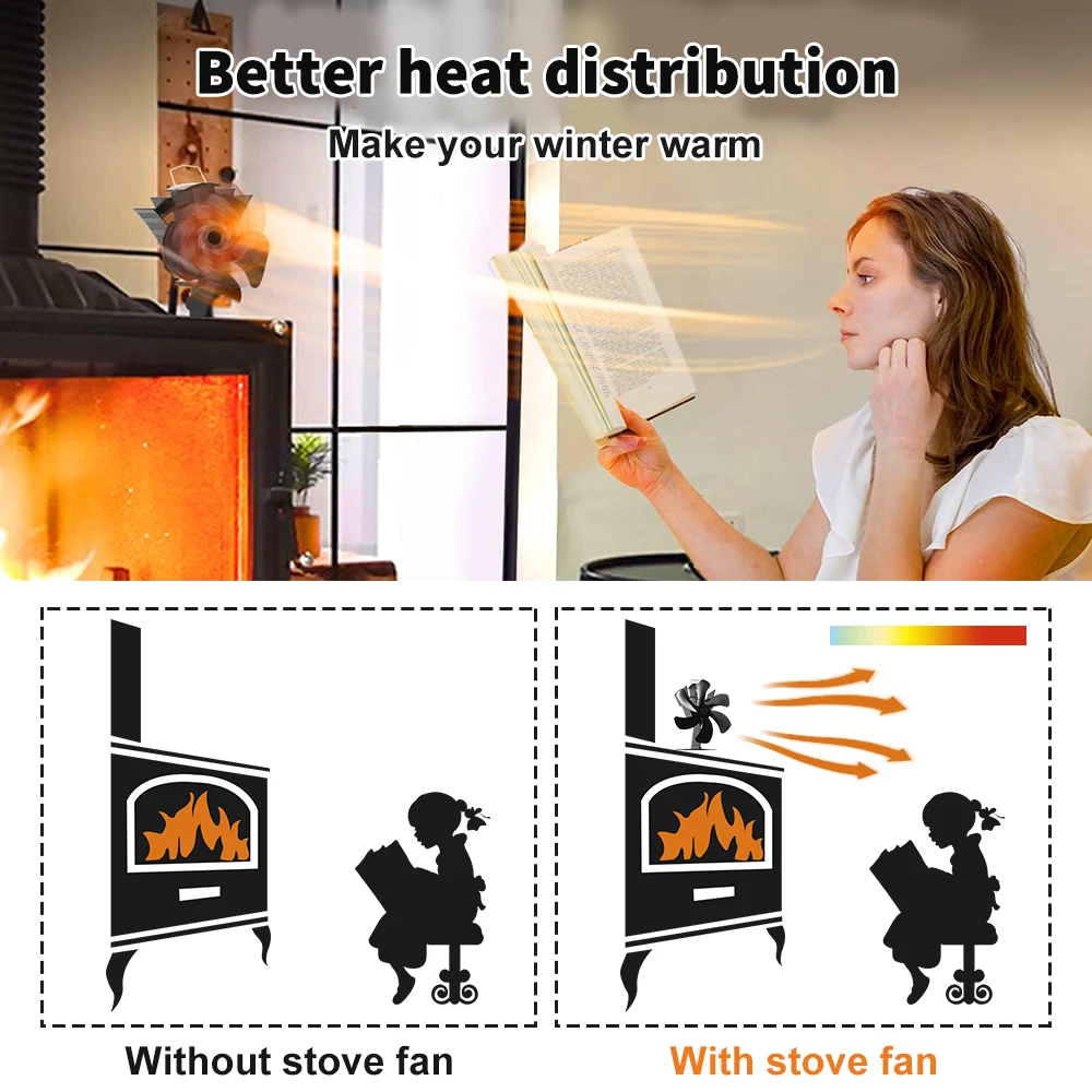 ⭐ Description: 【7 Blades Heated Powered Stove Fan】 , no batteries or electricity required, upgraded 7 Blades improve efficiency of the fan , it provides larger air flow and effeciently circulate the warm air throughout the room. It is widely used for wood stove, gas stove, log burner ,etc. 【High-Quality Motor】 ,The upgraded motor makes the stove fan more powerful than that of old motors, the fan can start rotating when the temperature reaches 60°C/140℉, much more faster than the old models. 【Overheating Protection】 , Our stove fan has built-in high temperature protection device at the base of the fan. The safety device gently raises the front of the fan to protect the motor and electricity generating module, if the surface temperature exceeds 350°C/662℉ . 【Work Quietly】 : This wood buner stove fan runs almost completely silent and the heat distribution sends around the room efficiently. Noise is as low as 35dB. 【Upgrade Blades & Thermometer】 , The blades are made of Premium Aluminum, thinner than others and rotate faster. The stove fan comes with a magnetic thermometer , you can check the stove temperature at any time. ⭐ Specifications: Type:Stove fan Quantity:1pc Color: Black CFM:180-210 Working Temperature 50℃-350℃ Operating Temperature rRange: 122 Degrees F to 662 Degrees F (50 Degrees C to 350 Degrees C) Air Volume: 180-210 Material: Premium Anodized Aluminum & Steel Note: Make sure the temperature of burner top higher than 40°C/100℉, or the fan won't run or run slowly. ⭐ Package includes: 1 x Fireplace stove fan Payment Delivery details Return Contact us Feedback Payment We only accept the paypal payment methods. All major credit cards are accepted through secure payment processor PayPal.(* If you use e-check on PayPal, delivery may take longer, as we will hold your order until your e-check clear) Delivery details Item will be shipped within 2 business day after confirmed payment. (Not including weekend or public holidays) Please verify your address during checkout. We are not responsible for any wrong or undeliverable addresses. All items will be checked strictly before shipping and it will be shipped to your PayPal address. Estimated delivery time is 1-5 working days (Not including weekend or public holidays) Delivery times may vary particularly during peak periods or unexpected weather conditions. In event of a very unlikely slight delay, your patience would be highly appreciated. We do not provide pick up or local collection service so far. Return We accpet return within 30 Days of dispatch. For exchange buyer MUST return the defective item for 1 to 1 exchange, return cost due to buyer. For free shipping means we paid the shipping fee on your behalf, that fee will be deducted. In case return cause by wrong buy, return postage will be at buyer side also. Please contact us immediately about any your return before shipping back the Once the item has shipped the regular return policy applies. Notifying us ahead of time will help us to ensure that your return is dealt with promptly upon arrival. Contact us We guarantee 100% Buyer Satisfaction. We are increasingly expanding international markets based on high quality products, excellent service, reasonable priceboas and timely delivery. Please contact us at any time for more information.We work hard to make sure EVERY CUSTOMER 100% approvingly. Feedback Very appreciated for your support. I hope you are happy with your purchase. We maintain high standards of excellence and strive for 100% customer satisfaction! Feedback is very important to us. We request that you contact us immediately BEFORE you give us or feedback, so that we can satisfactorily address your concerns. If you have any problem, please feel free to contact us via ebay message, we will reply your email within 24 hours (except weekends and holidays). We will do our best to solve your problem as soon as possible. We appreciate your continued patience and willingness to work with us. Thank you for choosing us and have a great day!