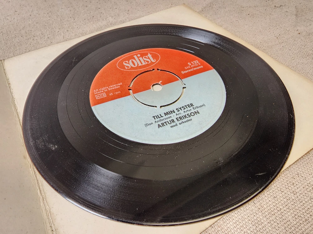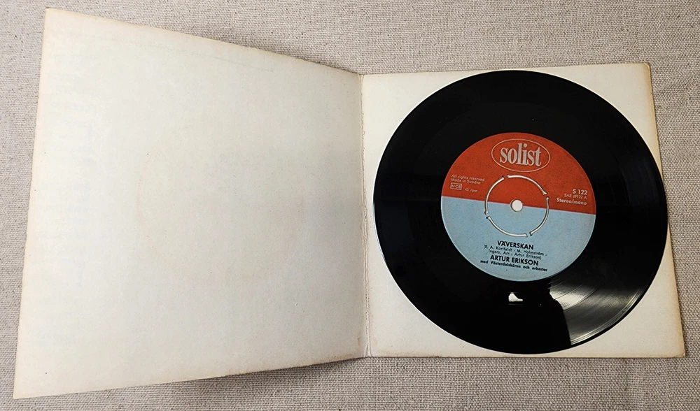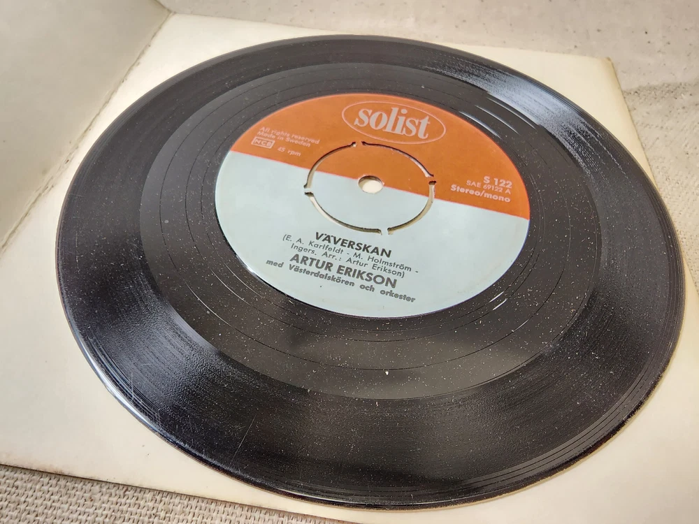 7" Vintage Vinyl Record Artur Erikson 45RPM Till Min Syster Väverskan Solist S122 Used record with original album sleeve. Sleeve may show water damage,separation etc due to age. All records have been tested and are in good playable condition. Please refer to photos for details. The item in the photos is exactly what you will receive. Tracklist: A Artur Erikson Med Orkester*– Till Min Syster Arranged By – Artur Erikson Written-By – Dan Andersson B Artur Erikson Med Orkester*, Västerdalskören– Väverskan Arranged By – Artur Erikson Written-By – E. A. Karlfeldt*, M. Holmström-Ingers*