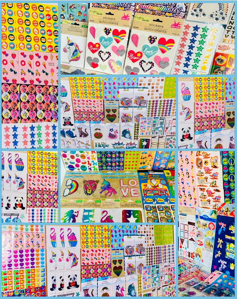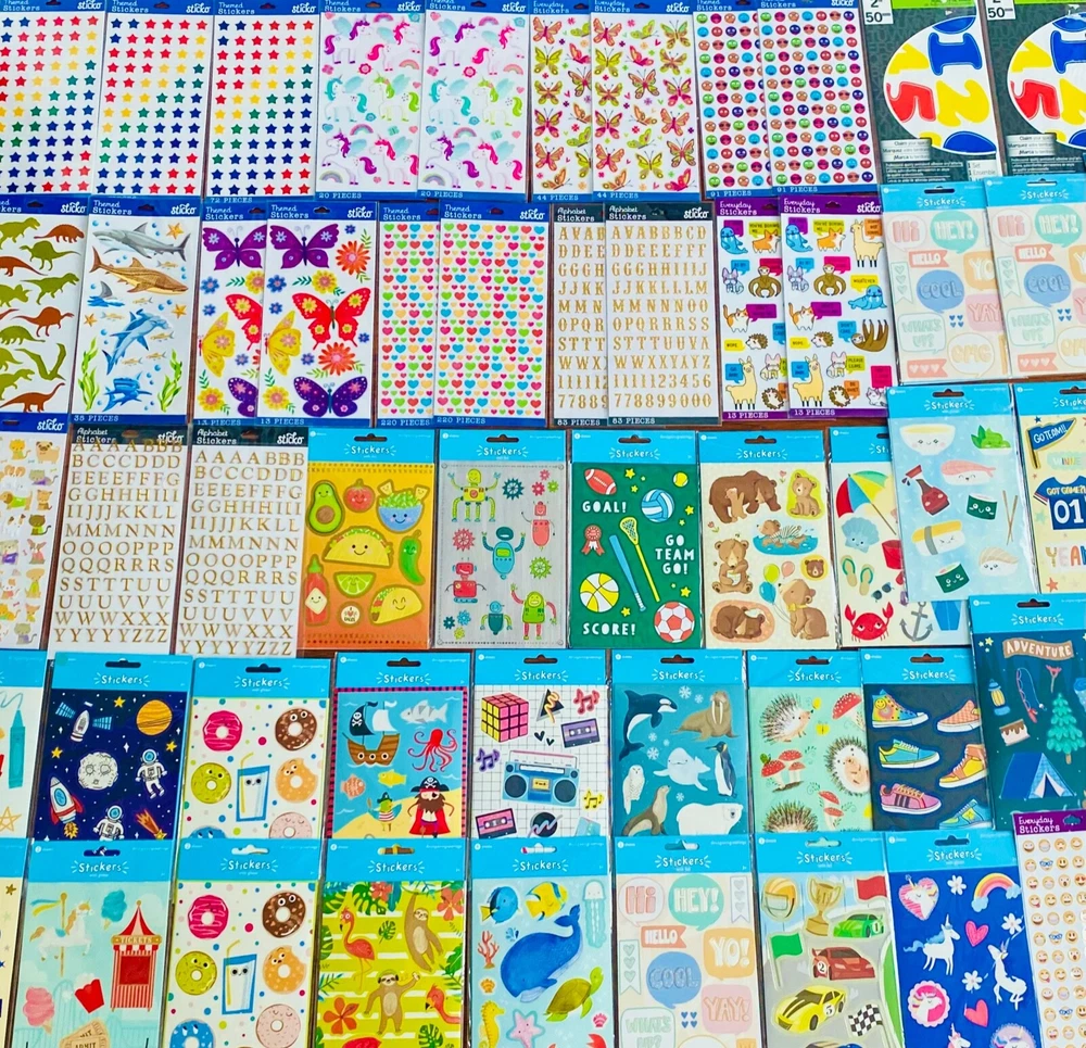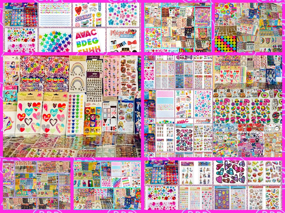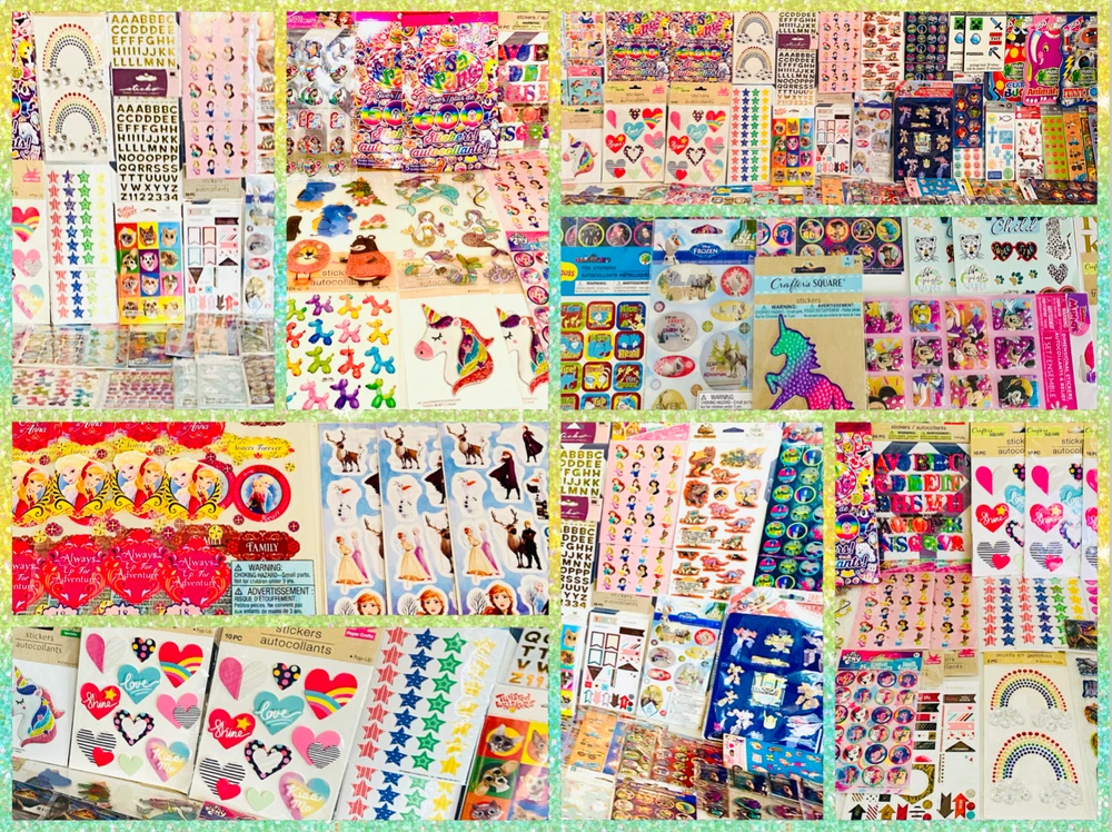 All stickers are BRAND NEW | Still in their original packaging! HUGE Mixed Sticker Lot | The Ultimate Kit | Qty. 7099+ Stickers | High Quality Only! Fun Assortment of Puffy, Scrapbook, Cartoons, Bubble, Pop Up Stickers Packs For Everyone! You will receive 179+ Sticker Sheets of beautiful colorful assortment. The Pack will include 7099+ Stickers overall! I have included a large variety of pictures of the assortment available. The pictures give you an idea of what you will be receiving. Please Note: You will not receive everything pictured. Please contact me with any special requests. This HUGE Variety of fun designs stickers can be used in parties, classroom, school and home, good for reward for students, potty training, adding inside a birthday card, game activities, entertaining toddlers, etc. Perfect Gifts for Kids & all Occasions: Can be given as a gift for kids, girls, boys, toddlers, teens, students, friends, and classmates, they will love it! Each package of stickers is a different style & theme with some lovely embellishments like rhinestones, ribbons, buttons and other 3D details that make these quality stickers look so unique!